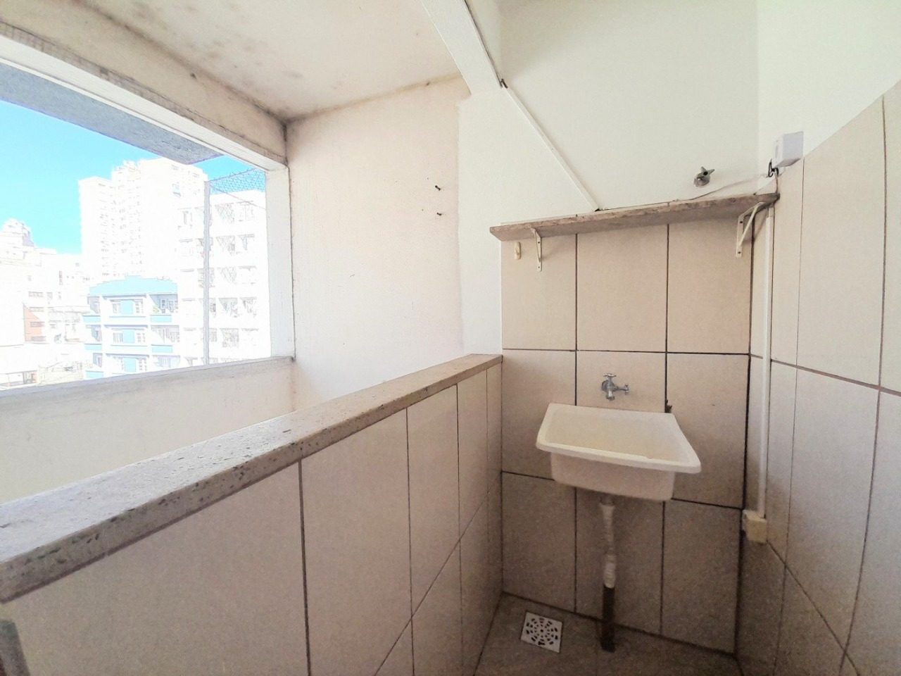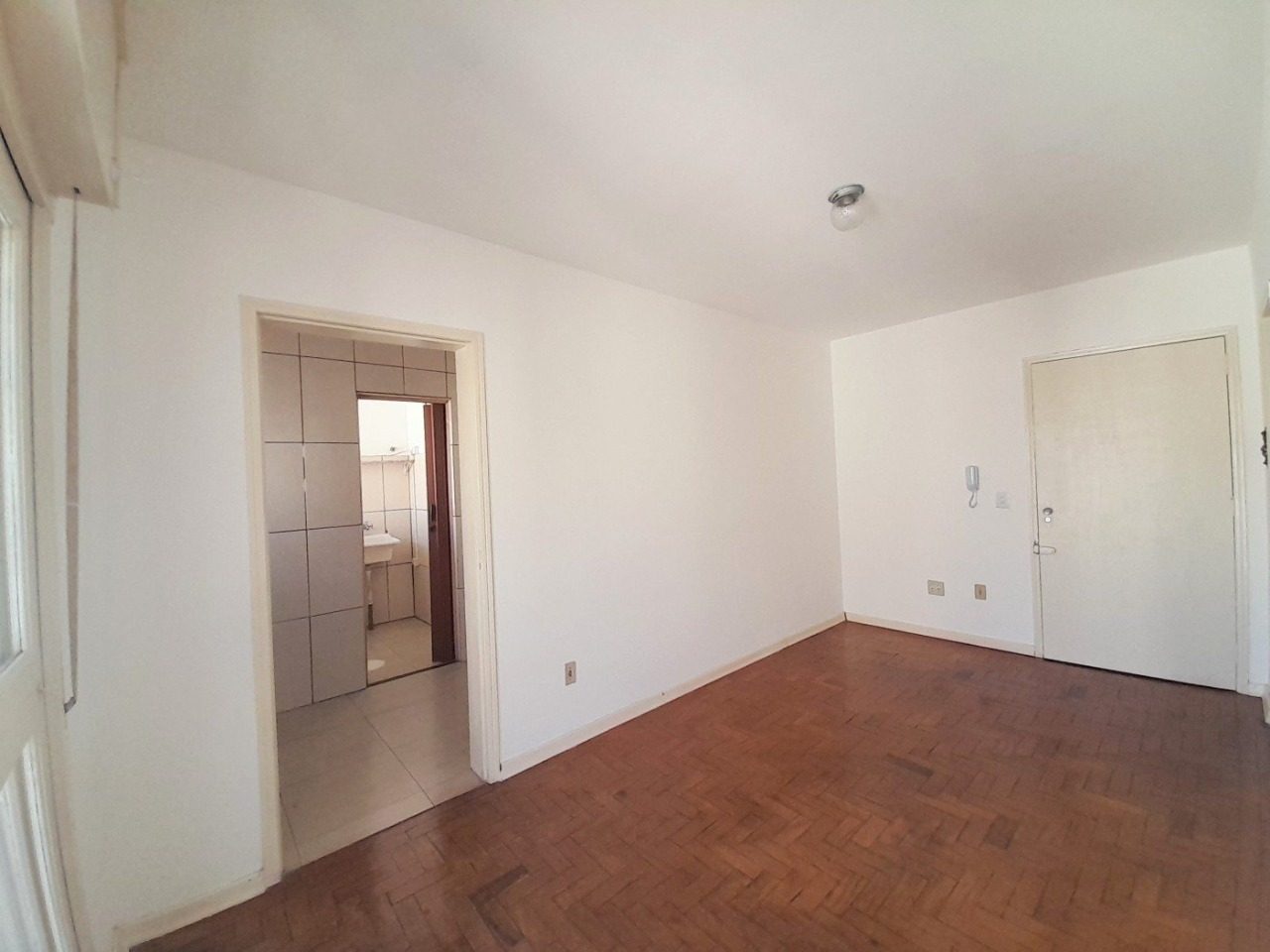 Apartamento de 1 dormitório; living com sacada, cozinha, área de serviço e banheiro social. Fica de frente, em andar alto, com sol da manhã.