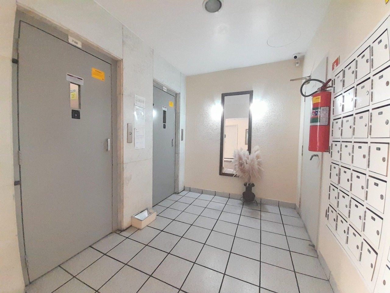 Condomínio com dois elevadores, hall e câmeras de vigilância. Há um estacionamento com box para locação próximo ao prédio.