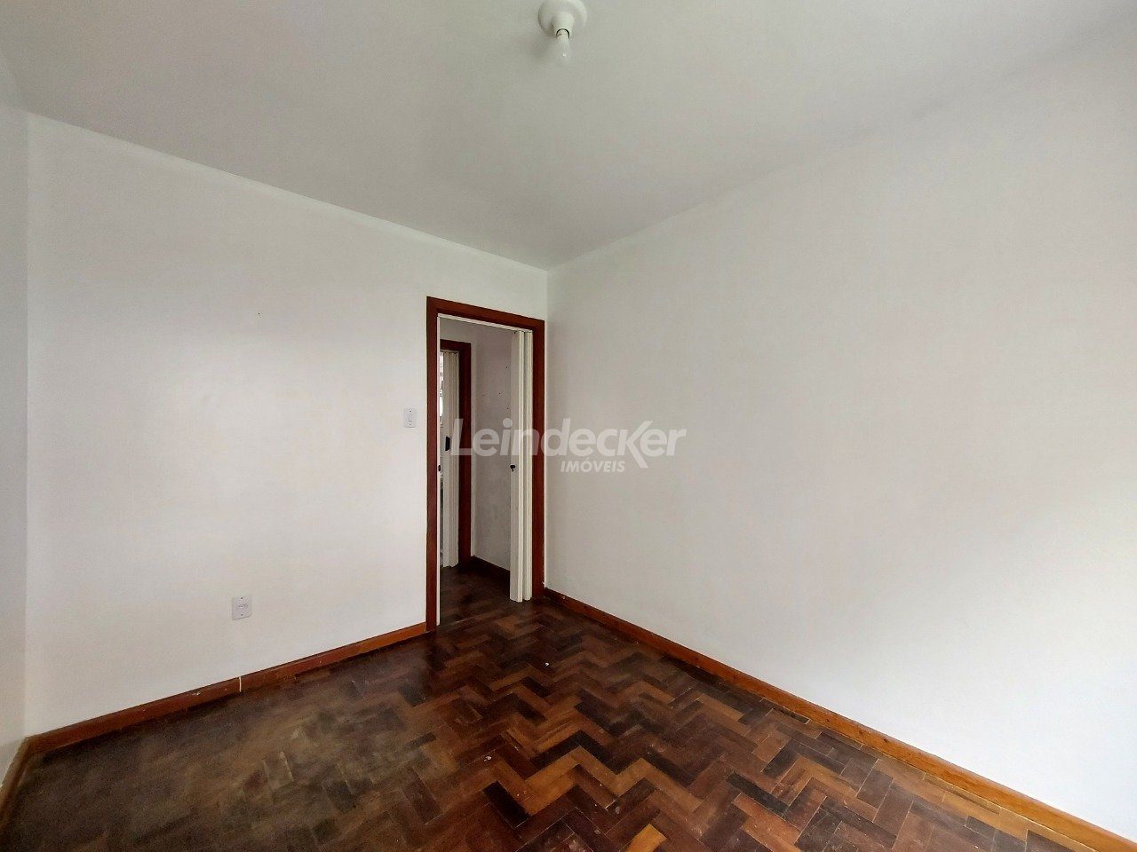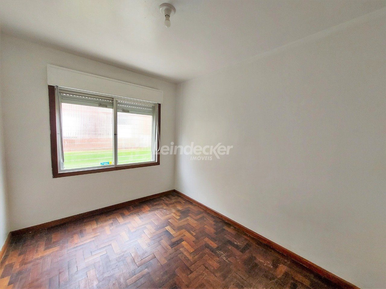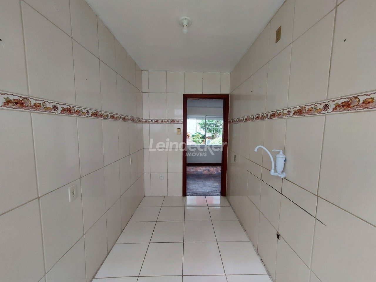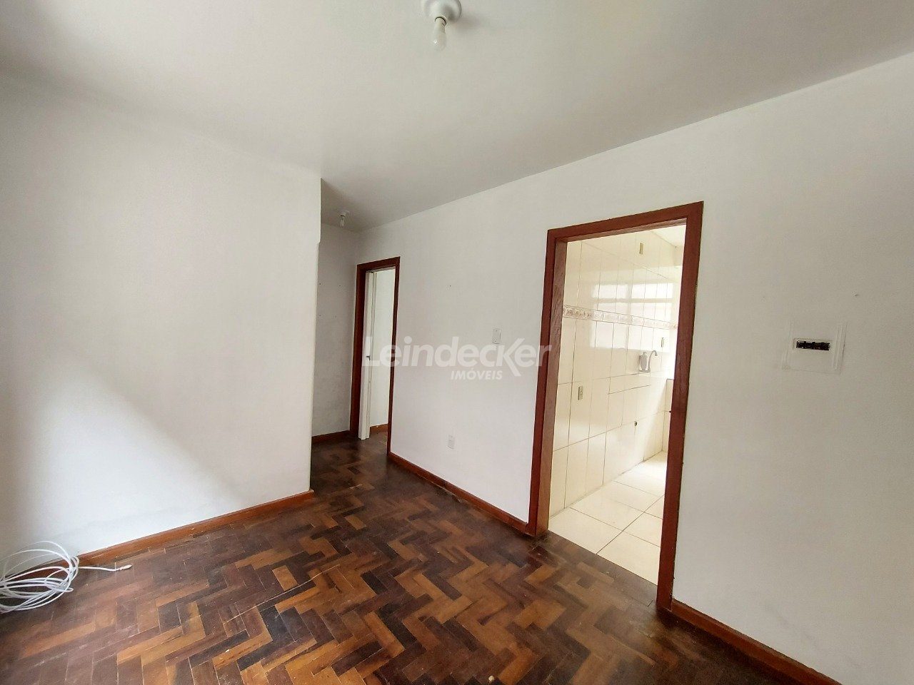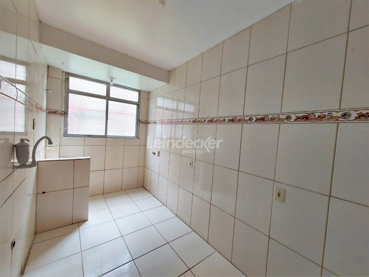 Apartamento térreo, desocupado, com 1 dormitório, living com 2 ambientes e cozinha com área de serviço separada.