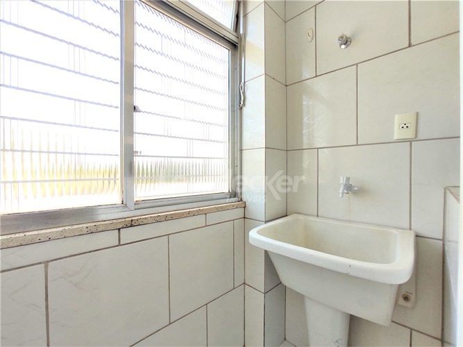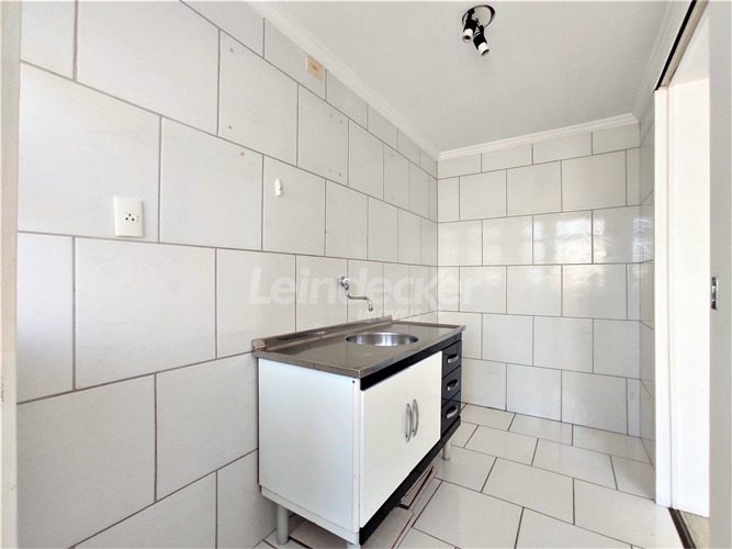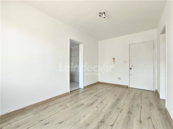 Imóvel com 1 dormitório, living 2 ambientes, piso laminado, banheiro social, cozinha com bancada e área de serviço fechada.