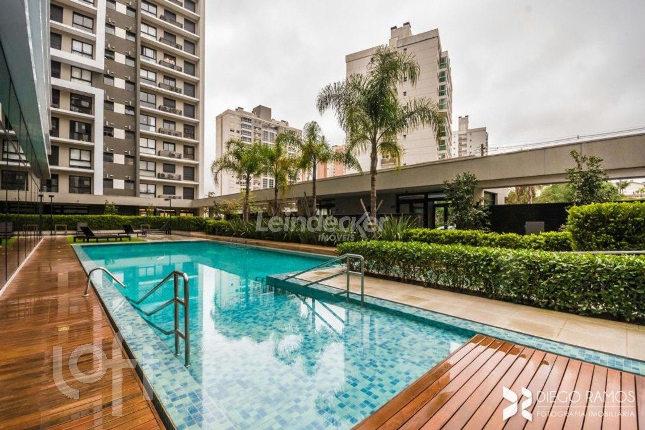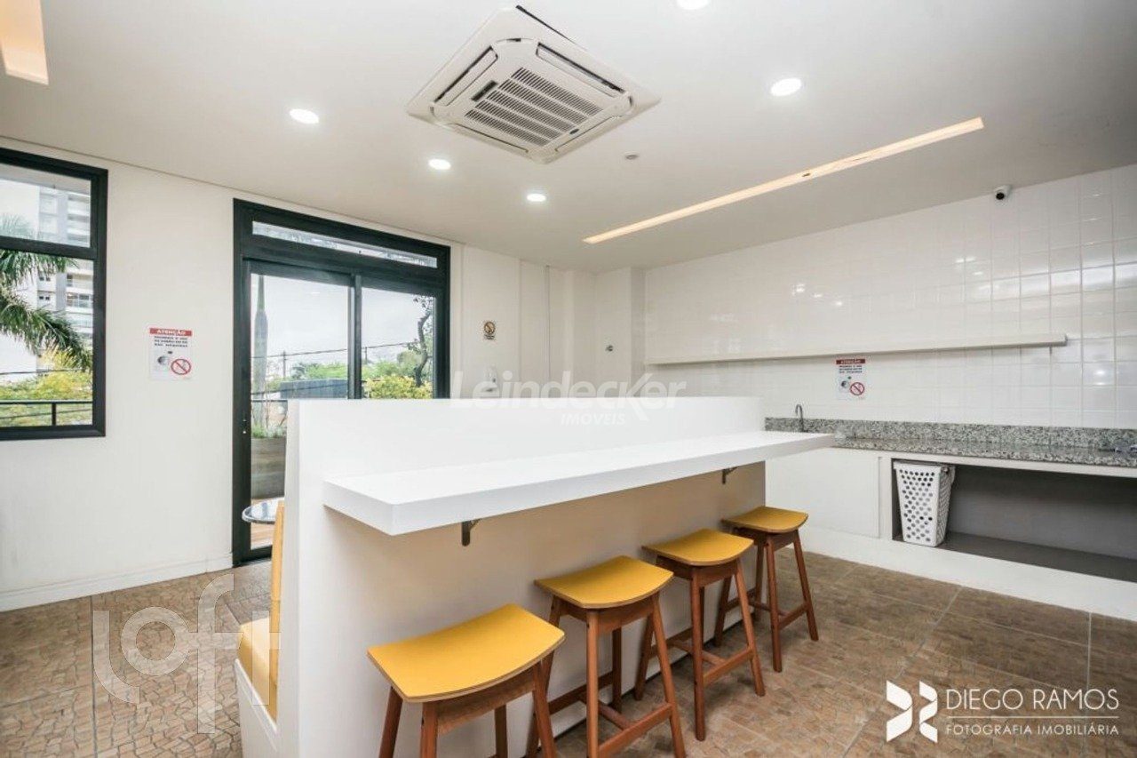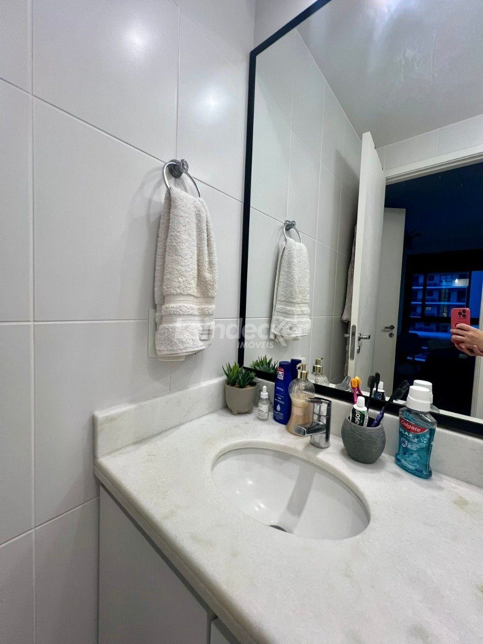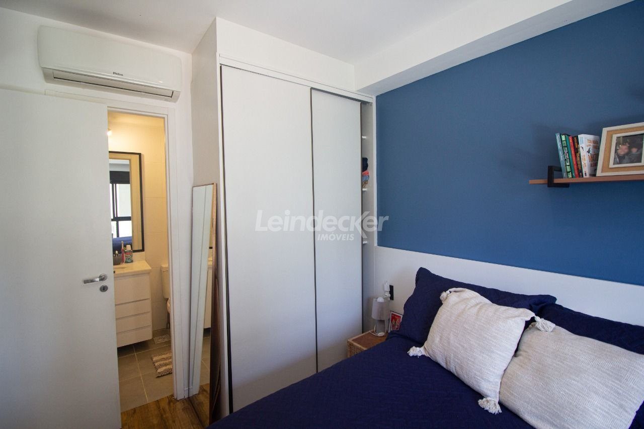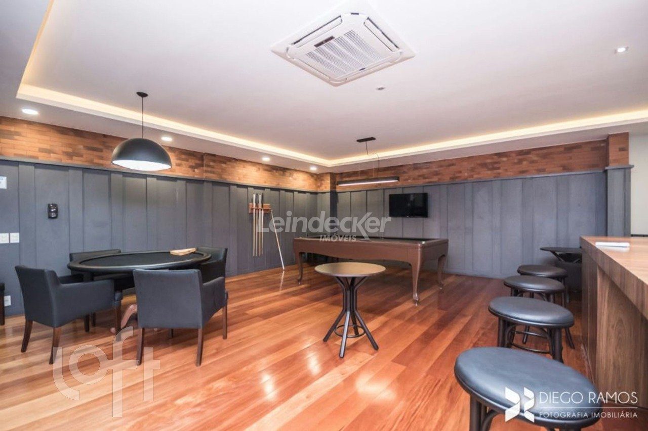 Apartamento de 1 dormitório com 42,48m², sendo suíte, living e cozinha integrados com churrasqueira, ar-condicionado, banheiro social e semi mobiliado com móveis sob medida da marca D'linea. Conta com piso Durafloor, fogão, forno, coifa e bancada em mármore Paraná.