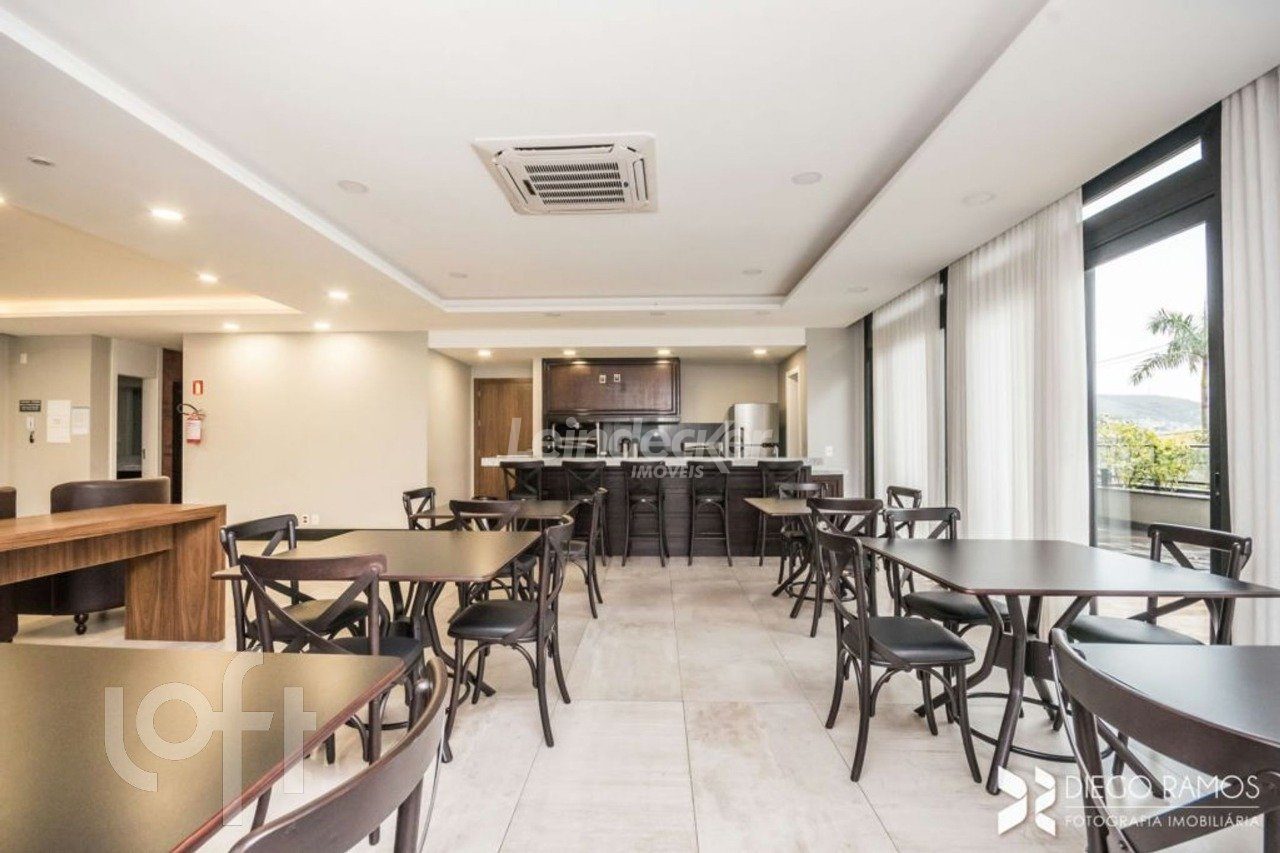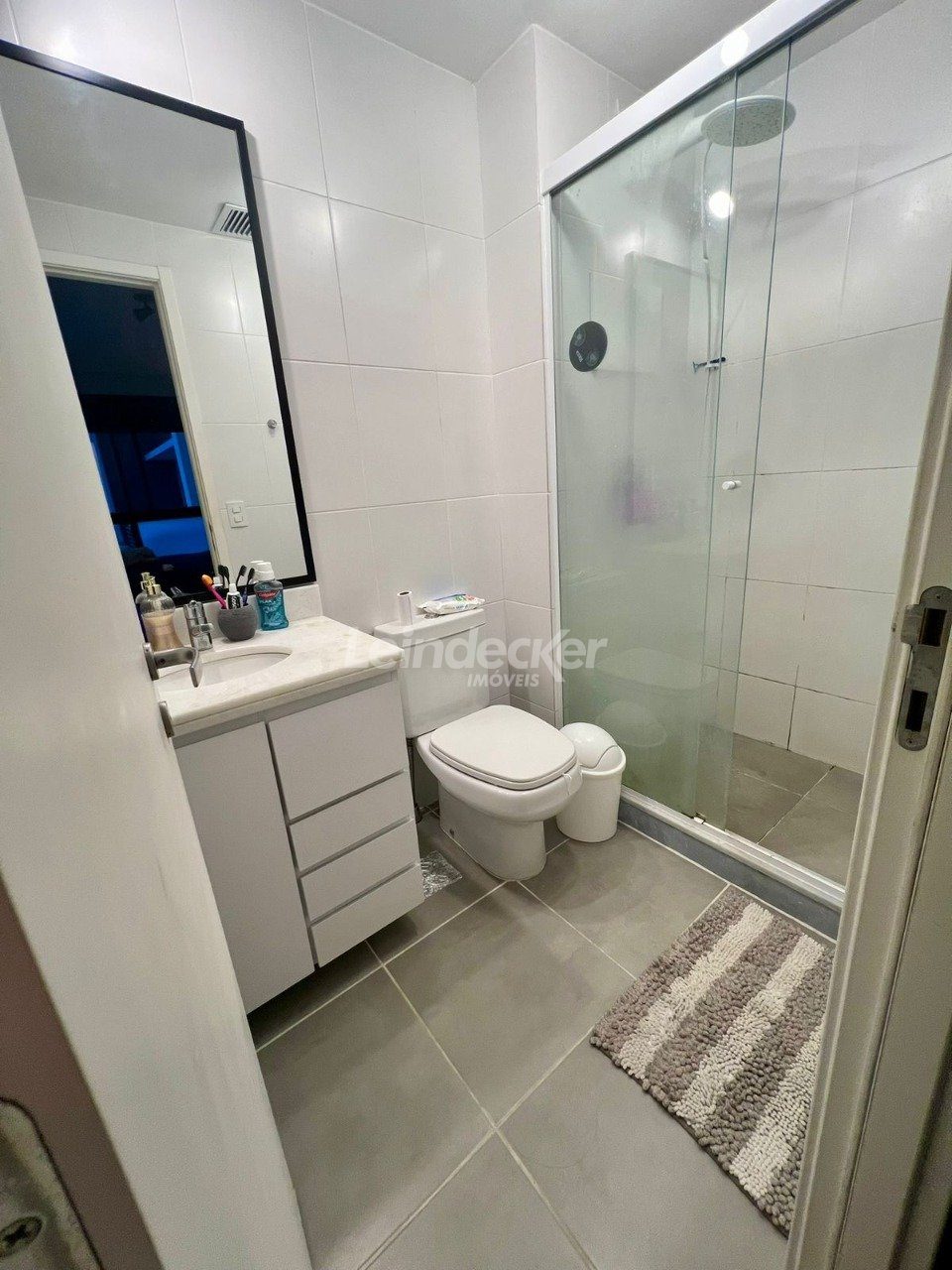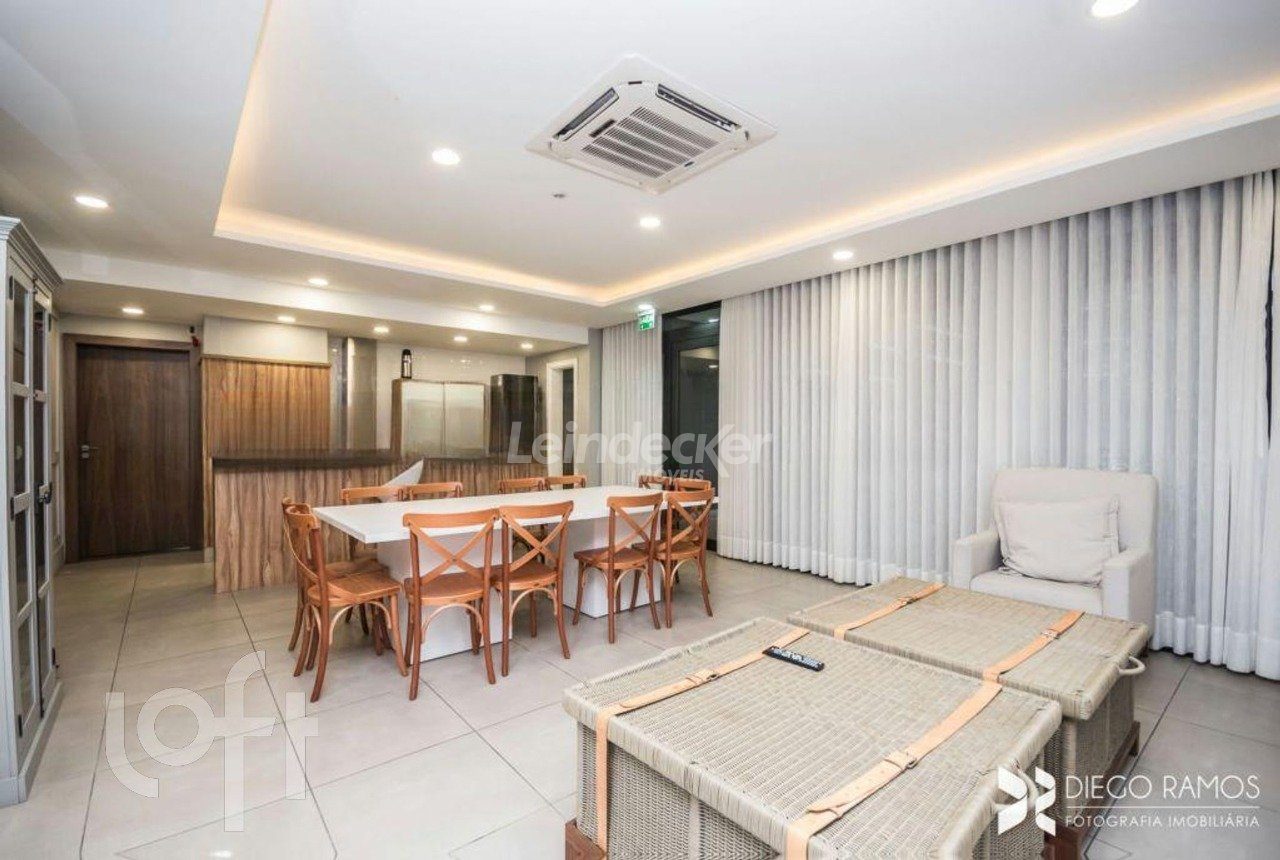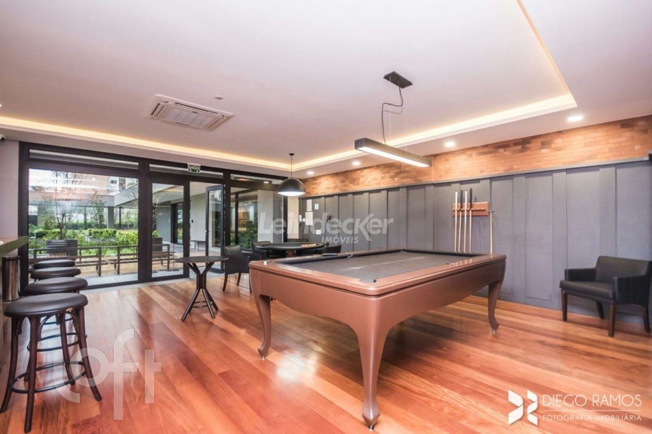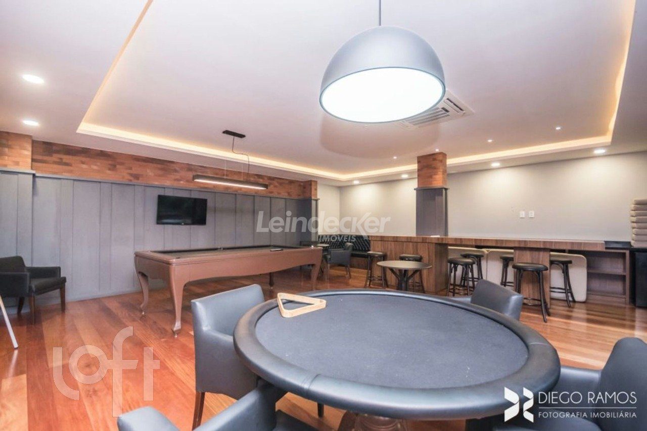 Apartamento de 1 dormitório com 42,48m², sendo suíte, living e cozinha integrados com churrasqueira, ar-condicionado, banheiro social e semi mobiliado com móveis sob medida da marca D'linea. Conta com piso Durafloor, fogão, forno, coifa e bancada em mármore Paraná.