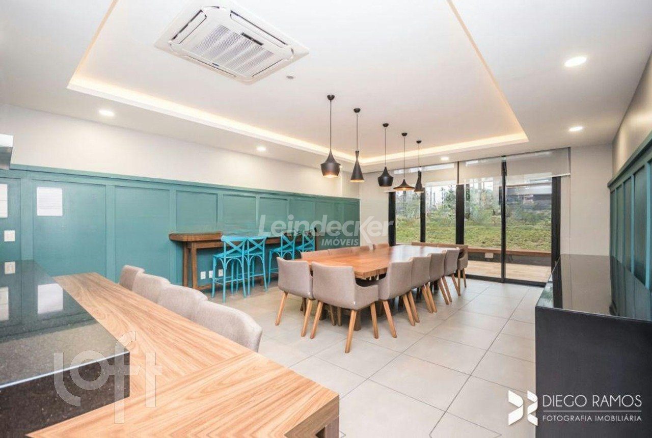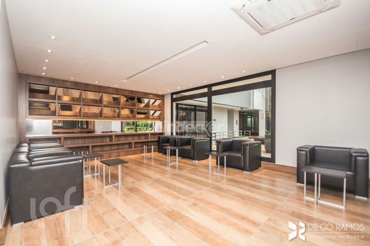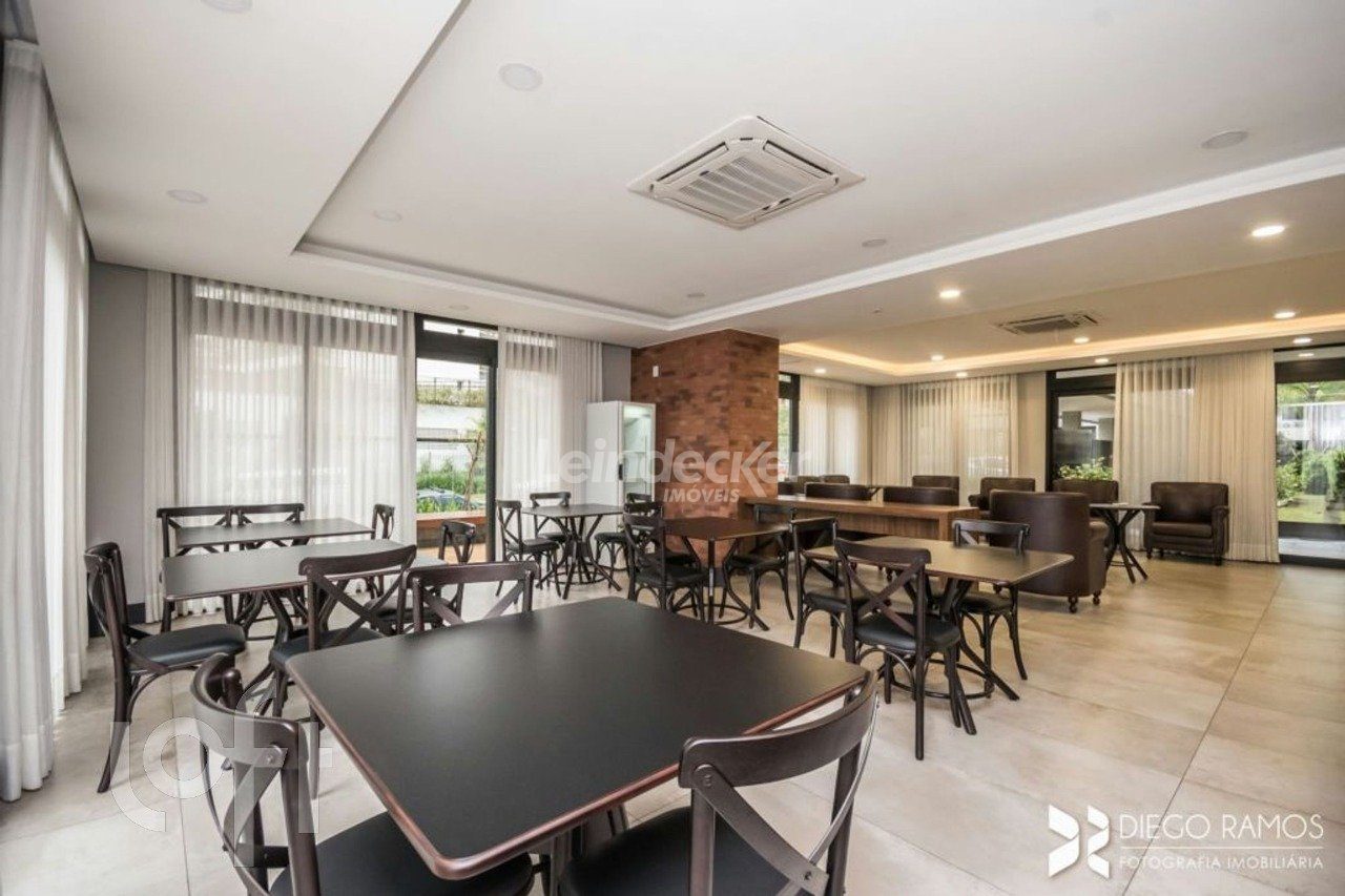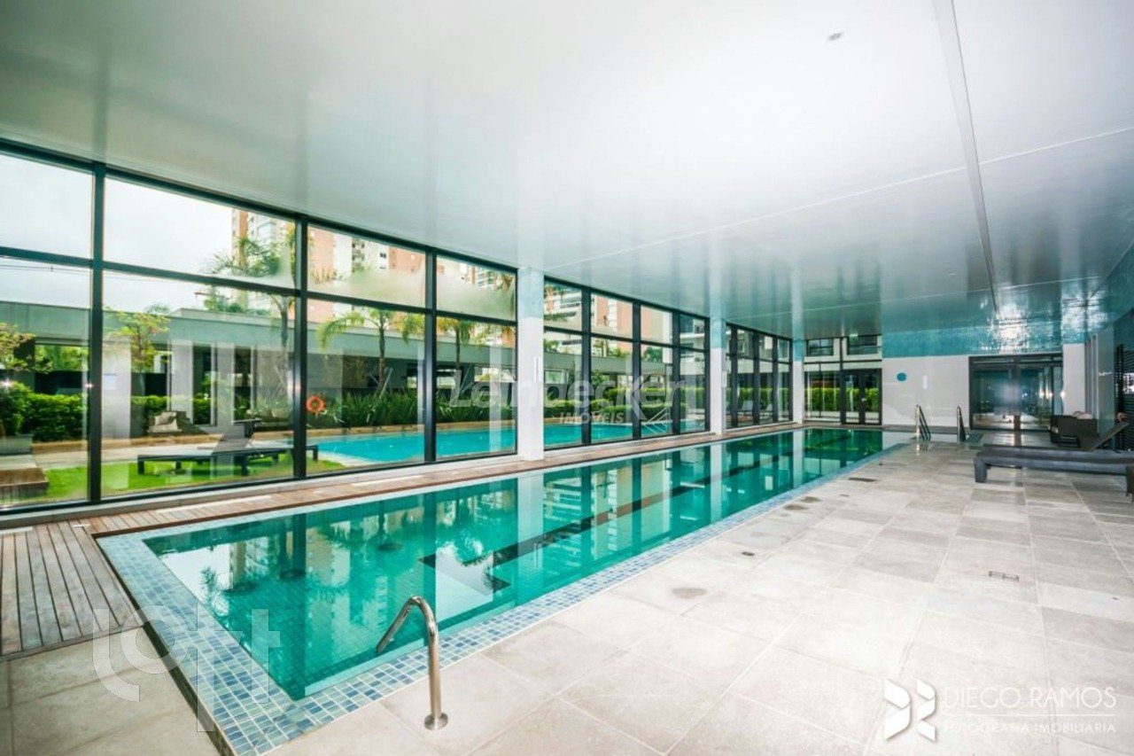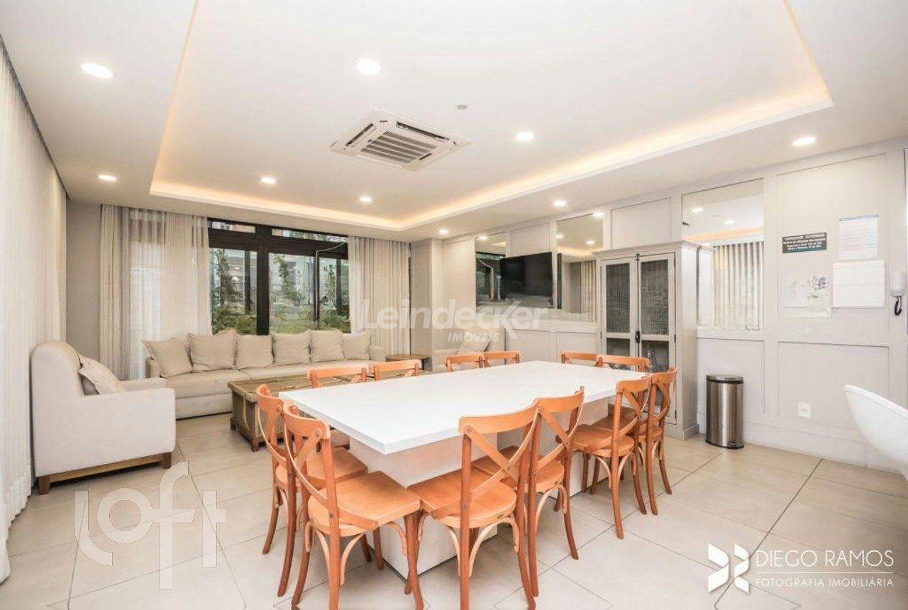 Apartamento de 1 dormitório com 42,48m², sendo suíte, living e cozinha integrados com churrasqueira, ar-condicionado, banheiro social e semi mobiliado com móveis sob medida da marca D'linea. Conta com piso Durafloor, fogão, forno, coifa e bancada em mármore Paraná.