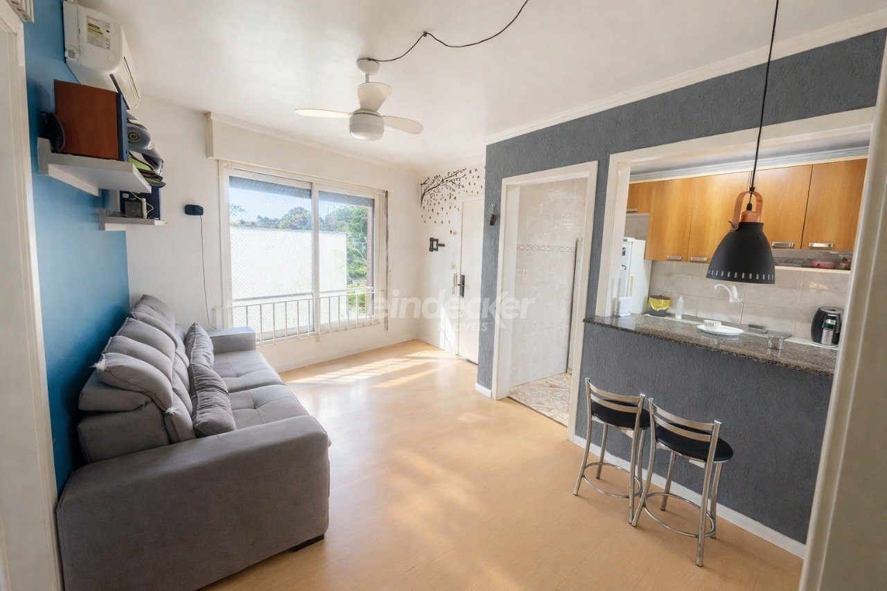 Apartamento de 1quarto próximo a PUC, um quarto com box coberto e escriturado, living de bom tamanho, banheiro social, cozinha americana com armários, área de serviço, de fundos. Melhor posição solar leste/oeste.