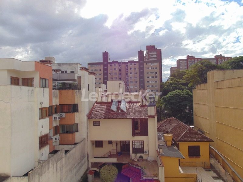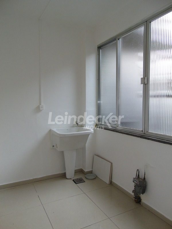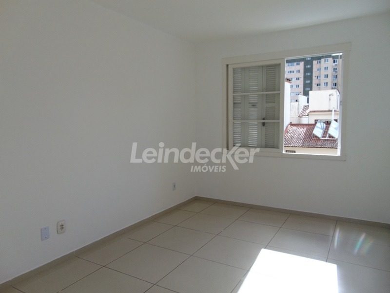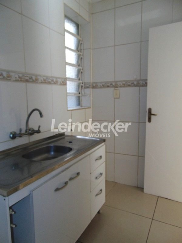 Apartamento de 1 dormitório, living, cozinha, área de serviço, banheiro com aquecimento a gás e ventilação natural. Fica no último andar (três lances de escada) de fundos, com boa incidência solar. Conta com box de garagem coberta escriturada.