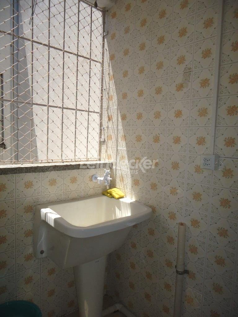 Apartamento com 1 dormitório; sala de estar; banheiro com ventilação natural; cozinha e área de serviço individualizada. Fica no 2º pavimento (um lance de escada) de fundos, silencioso com boa luminosidade natural. Piso laminado e janelas em alumínio com persianas.