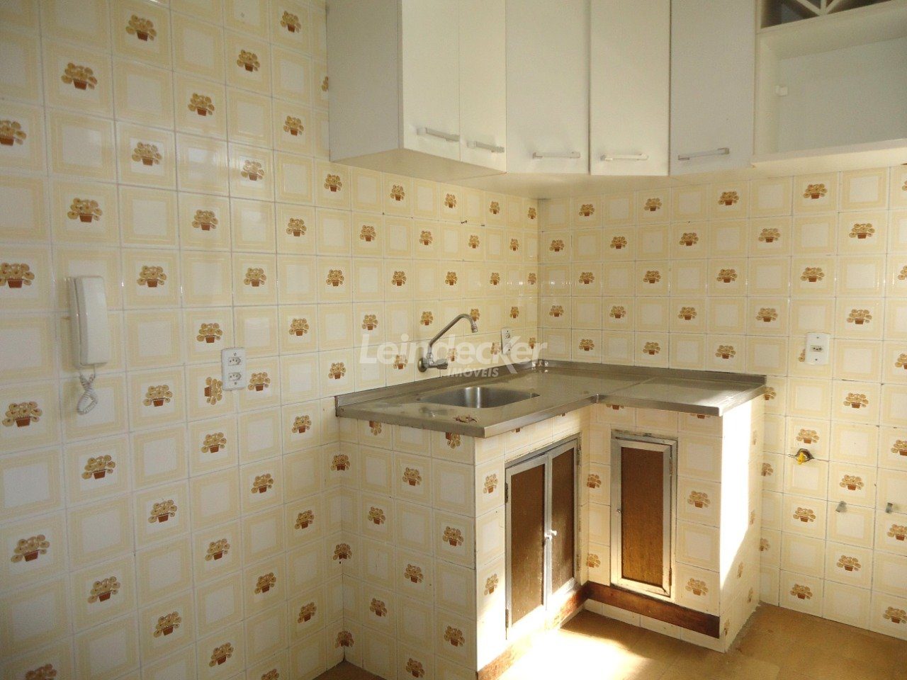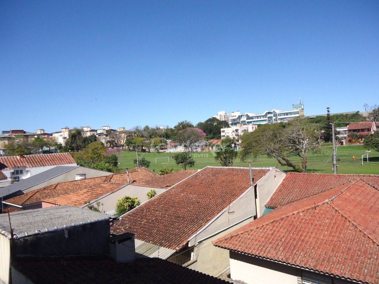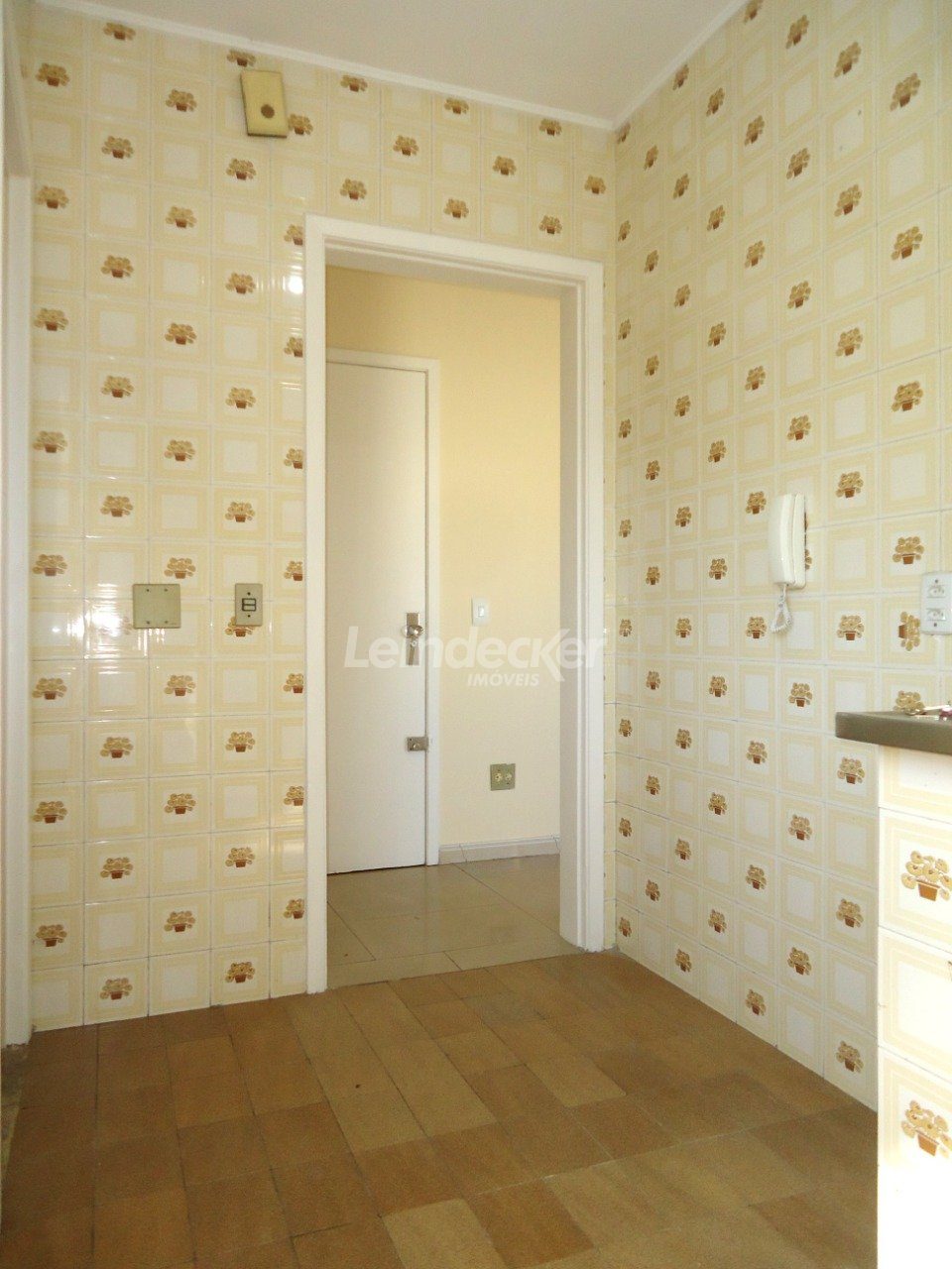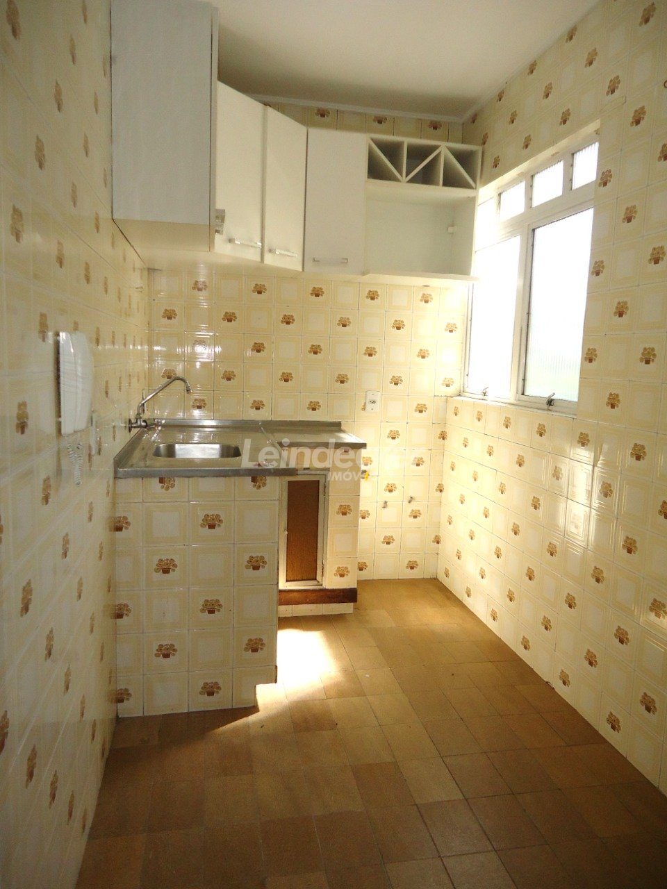 Apartamento de 2 dormitórios, sala para 2 ambientes; banheiro social, cozinha, área de serviço separada e banheiro auxiliar. Piso em porcelanato. Fica no 3º pavimento (dois lances de escada) de frente, com sol da tarde e vista para praça. Dispõe de garagem coberta.