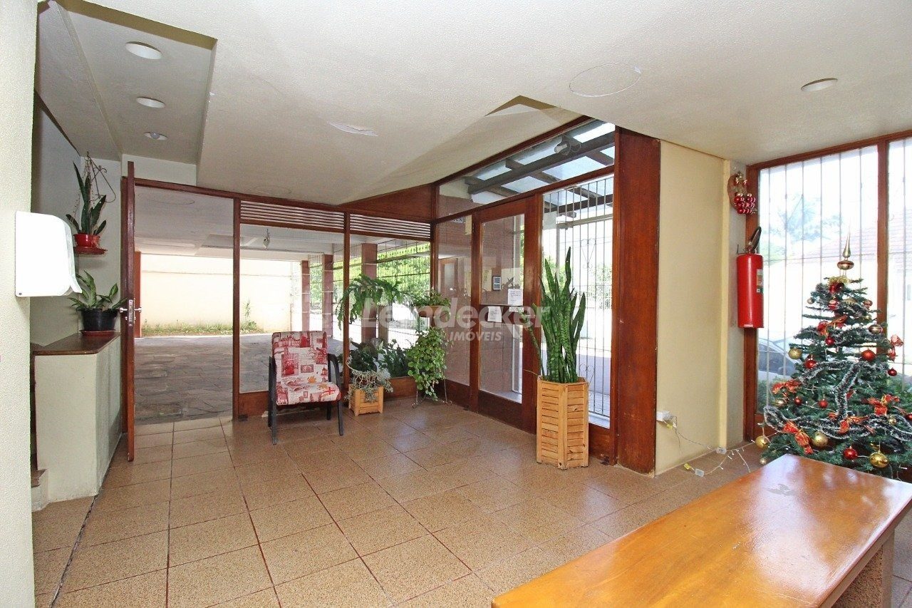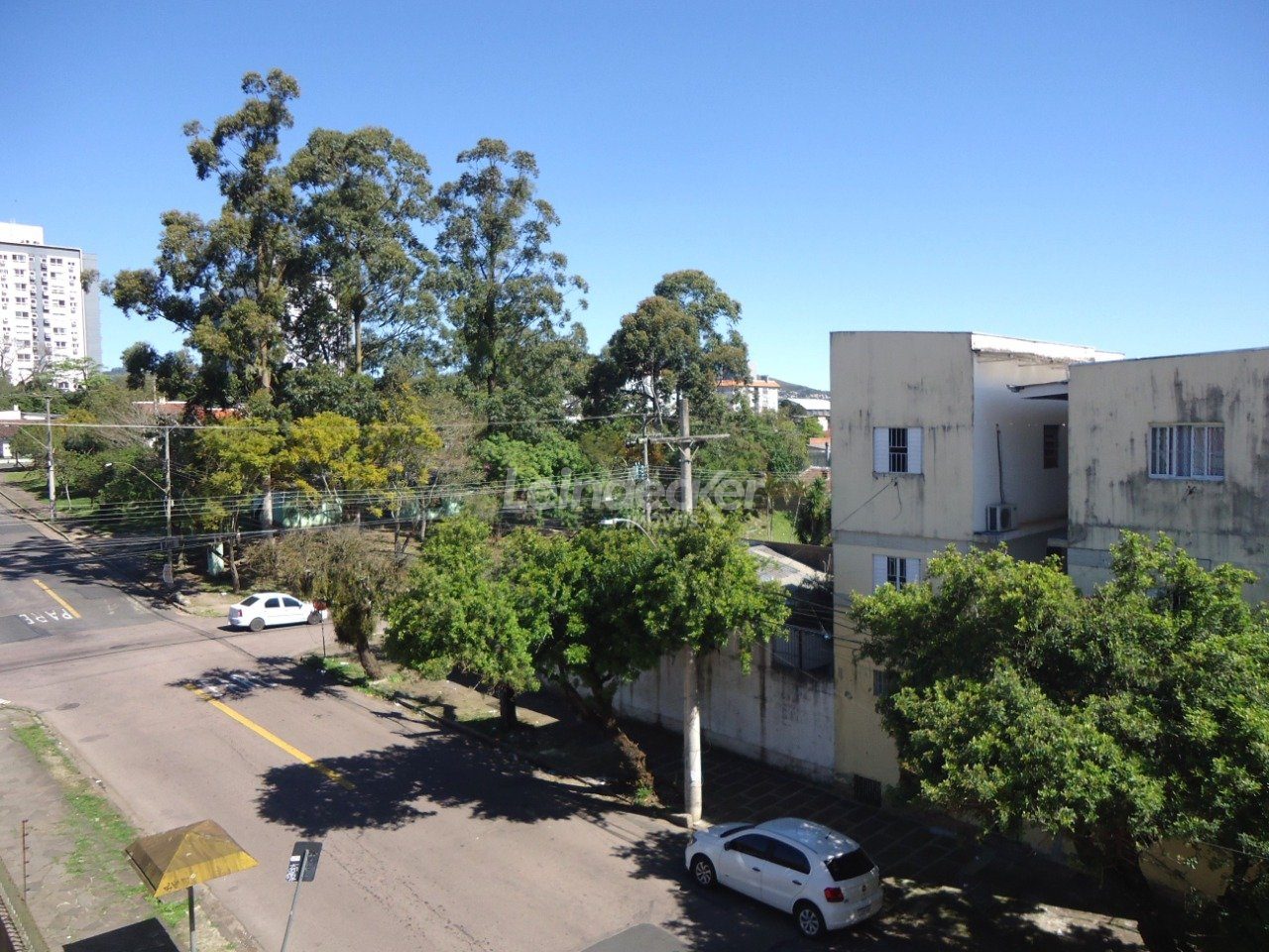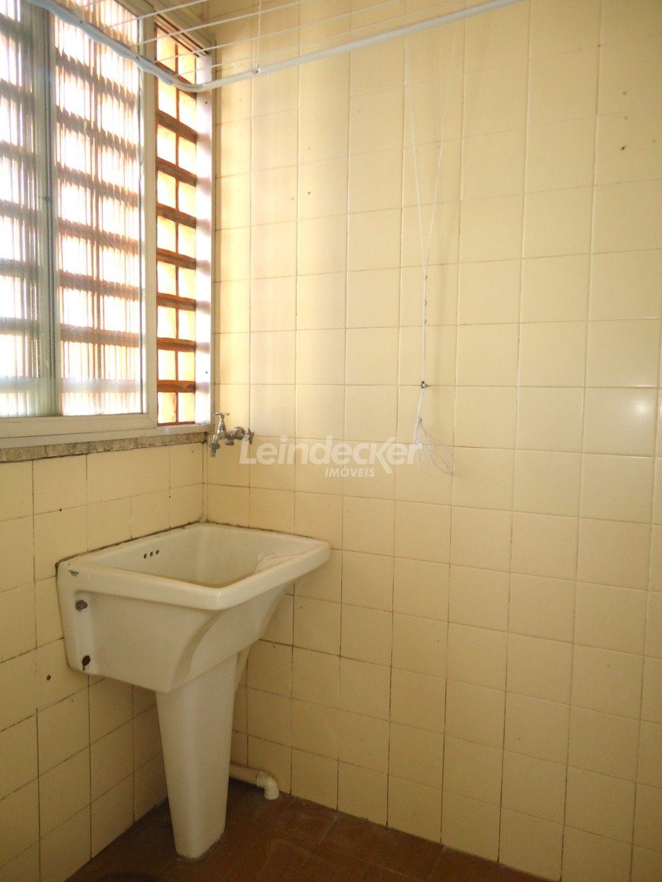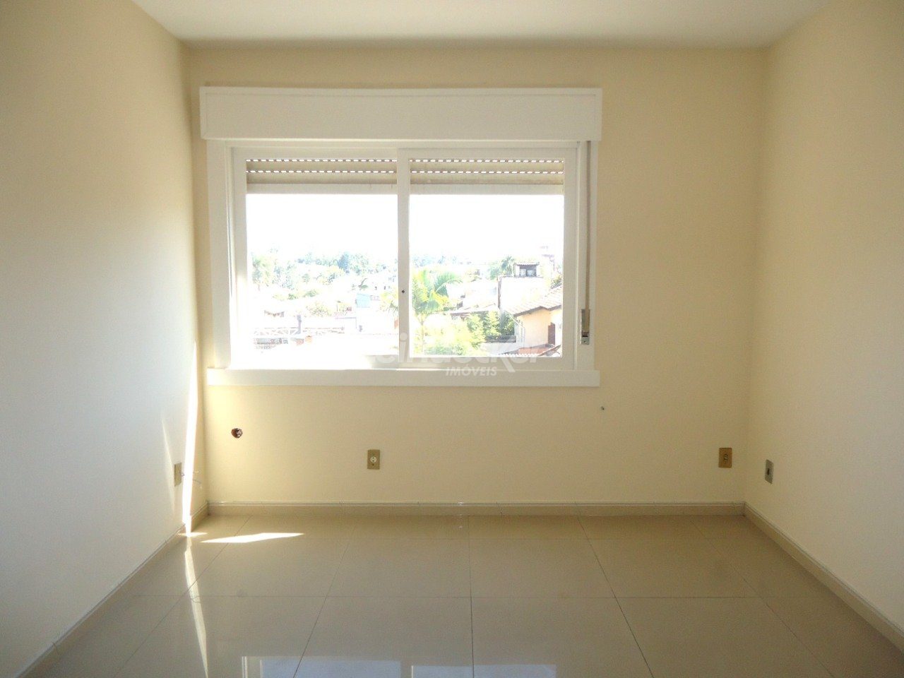 Apartamento de 2 dormitórios, sala para 2 ambientes; banheiro social, cozinha, área de serviço separada e banheiro auxiliar. Piso em porcelanato. Fica no 3º pavimento (dois lances de escada) de frente, com sol da tarde e vista para praça. Dispõe de garagem coberta.