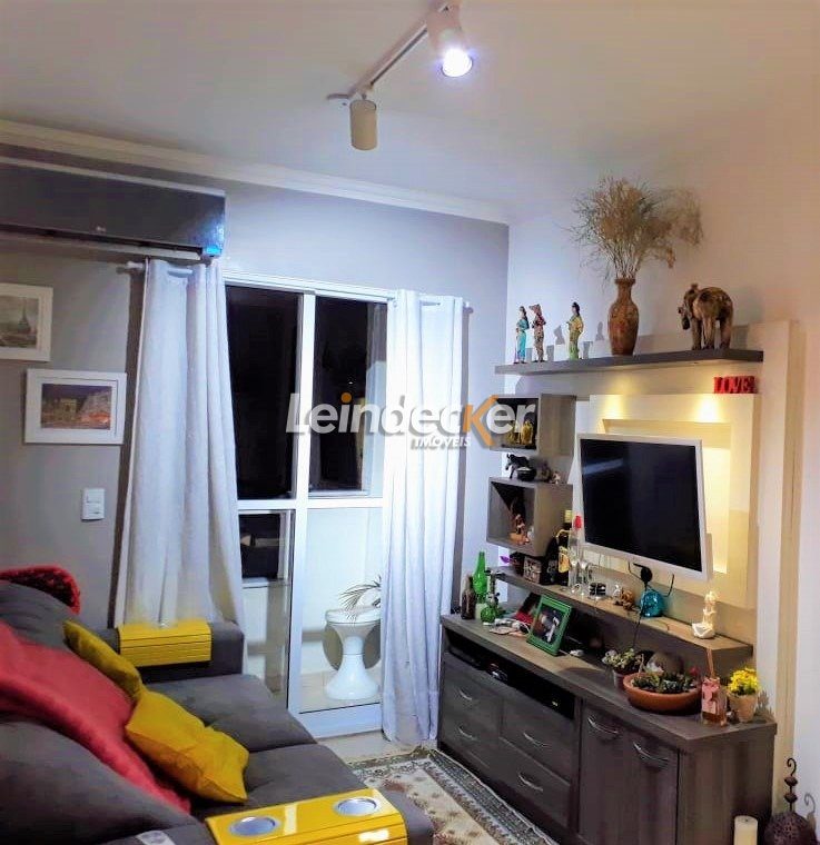 Leindecker Imóveis vende ótimo apartamento com 2 dormitórios, suíte, living para dois ambientes e sacada aberta, banheiro social decorado, cozinha decorada e mobiliada e 1 vaga de estacionamento escriturada.