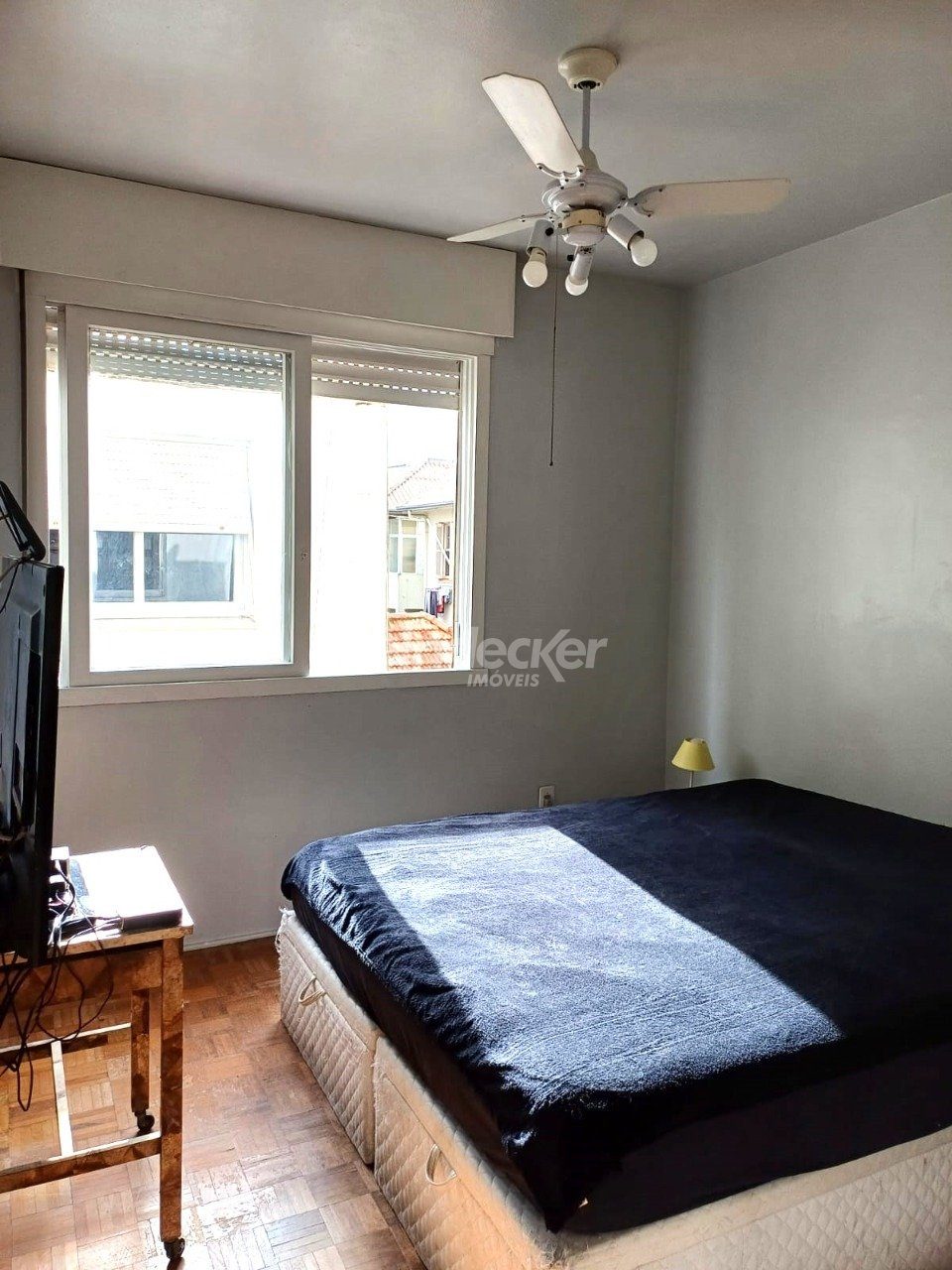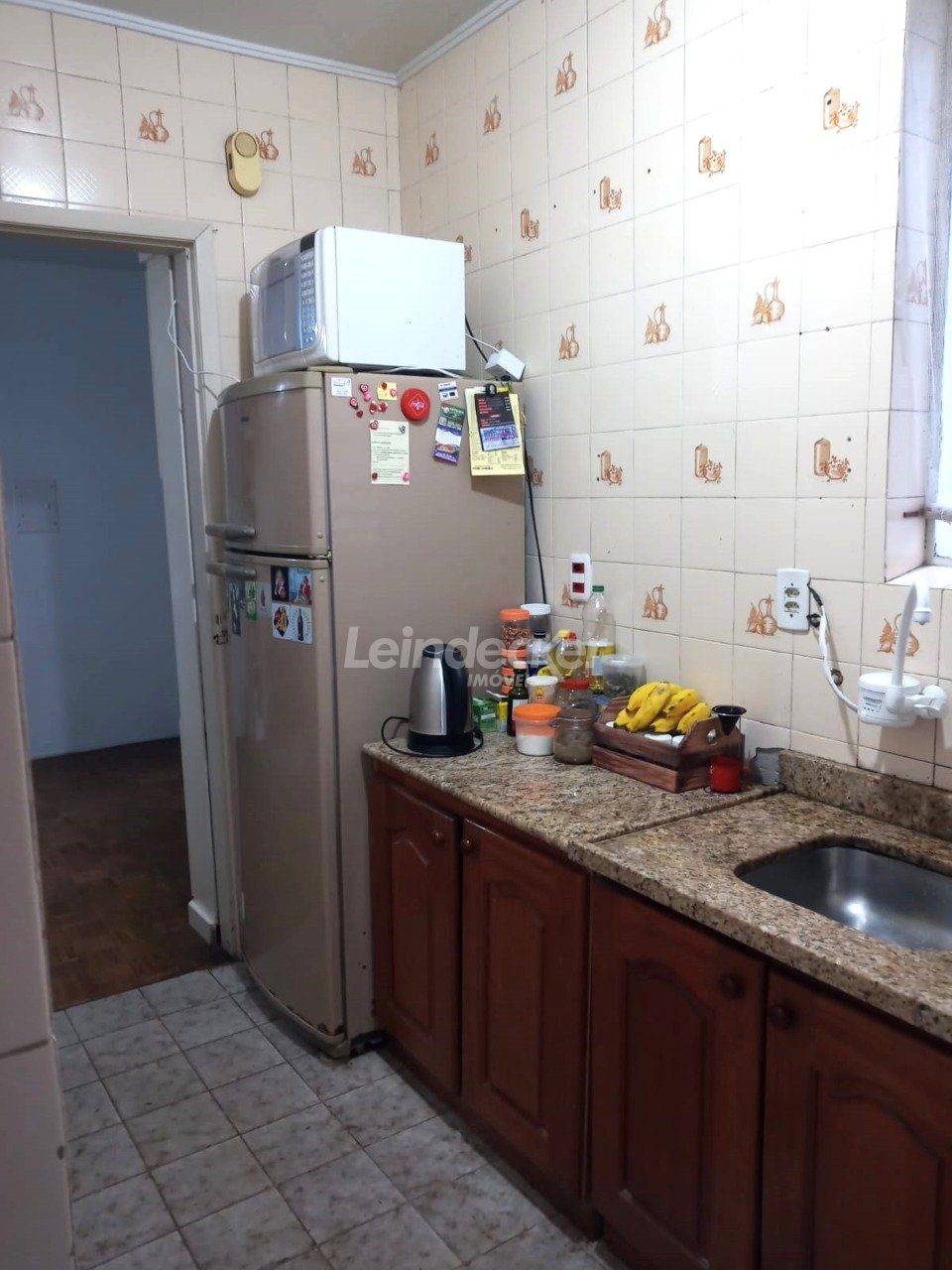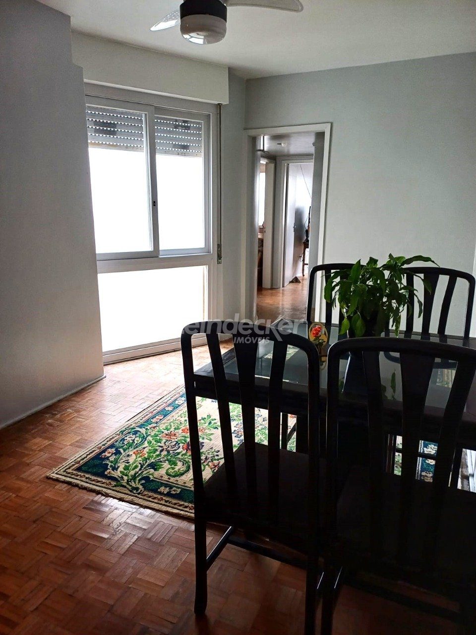 Apartamento de 2 dormitórios; sala de 2 ambientes com janela piso teto; banheiro; cozinha e área de serviço separada. Fica no último andar (três lances de escada) com boa incidência solar.