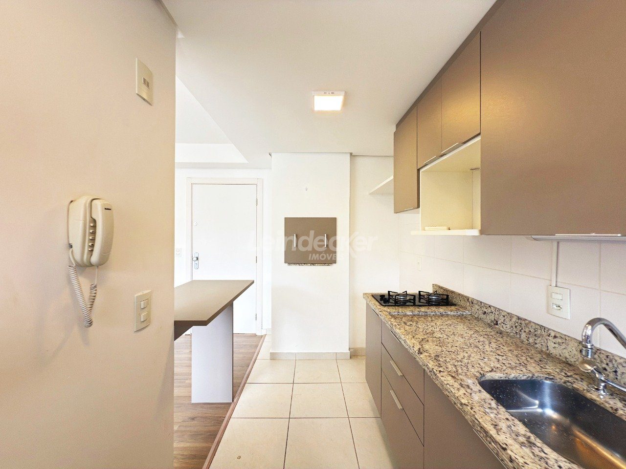 ambientes, cozinha americana com churrasqueira, dormitórios amplos e 01 vaga de garagem escriturada. O condomínio está localizado no bairro Petrópolis próximo a todos os recursos que o bairro oferece, tem uma infraestrutura de clube: Salão de festas, Playground, elevador e porteiro eletrônico. Solicite hoje ainda a sua visita.