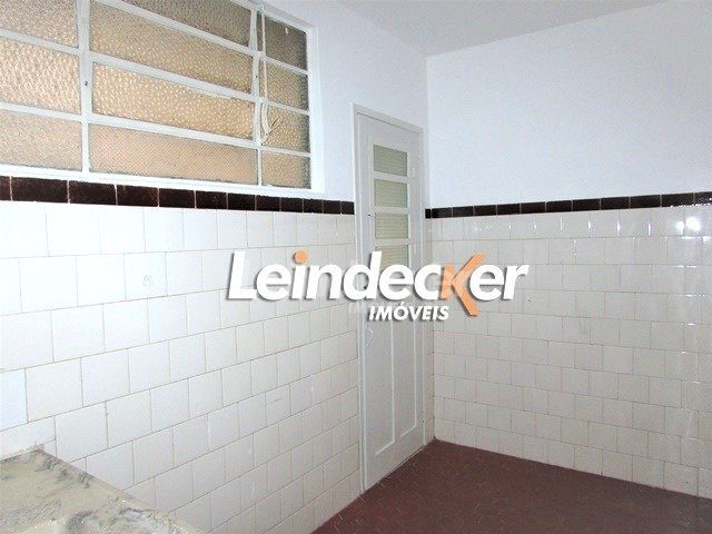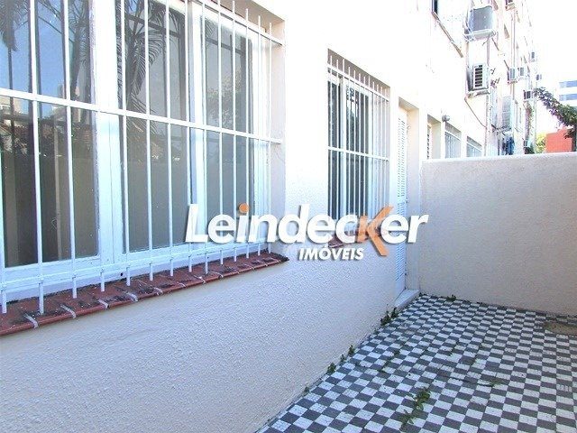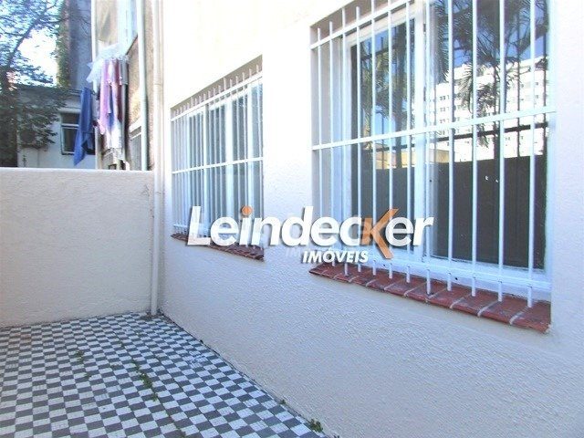 Apartamento térreo com 2 quartos, living de 2 ambiente, banheiro social, cozinha, área de serviço, dependência de empregada e duas áreas externas.
