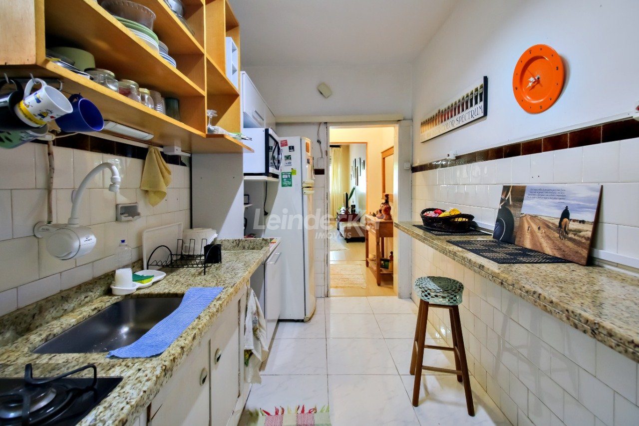 Apartamento com 3 dormitórios; living de 2 ambientes; banheiro com ventilação natural; cozinha; área de serviço e banheiro auxiliar. Fica no térreo, com ótima acessibilidade.