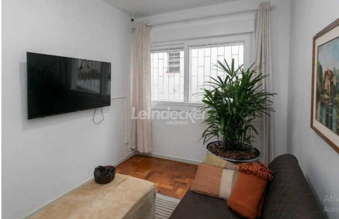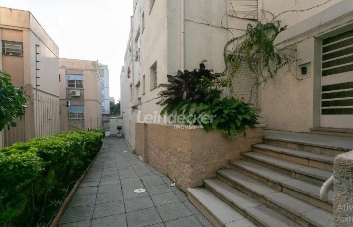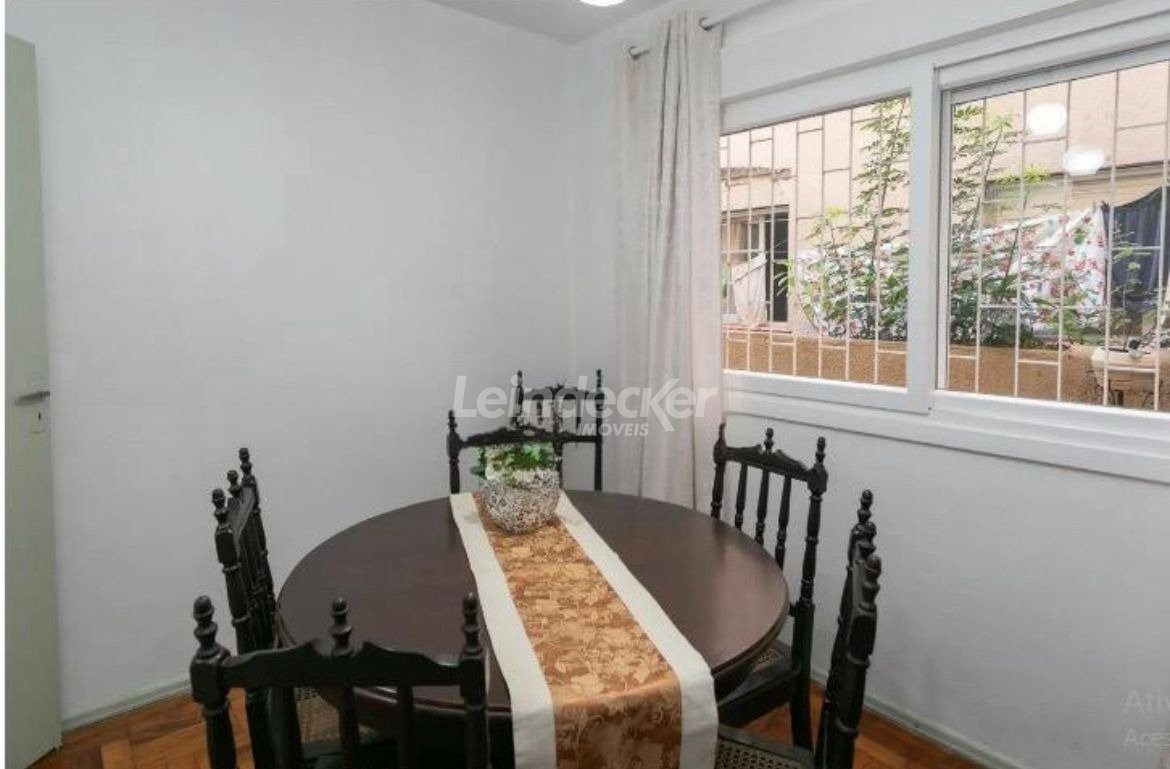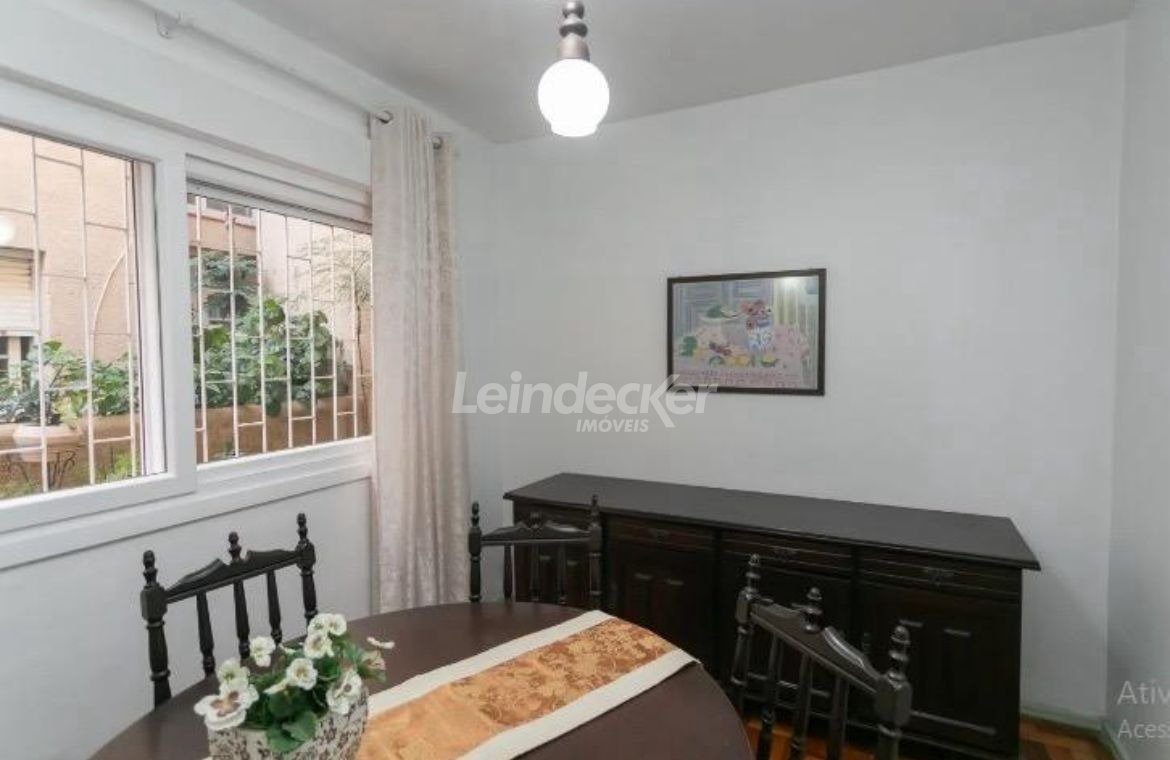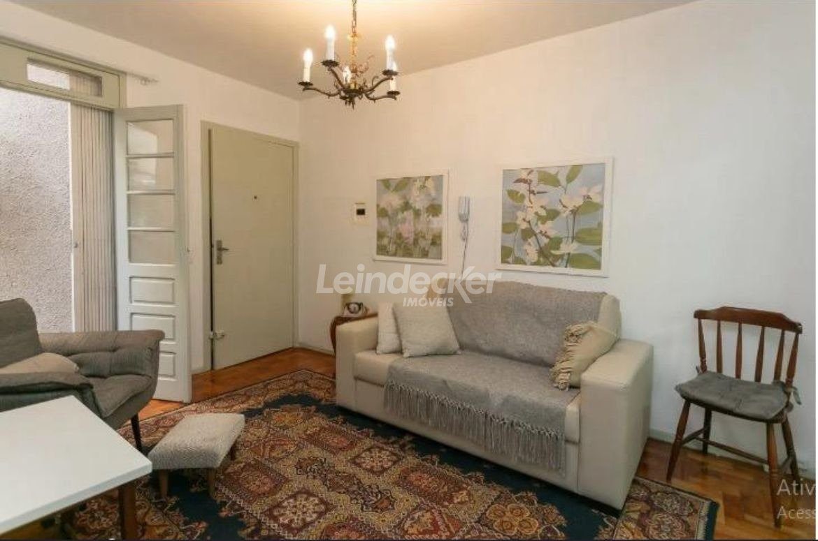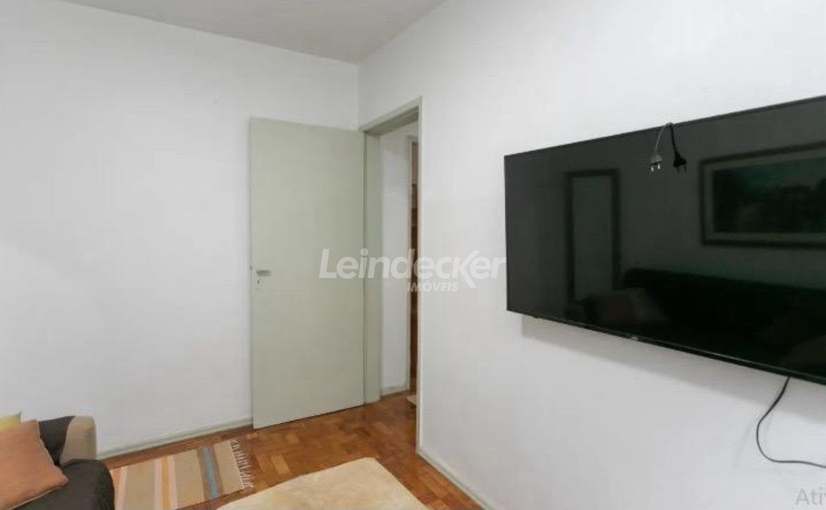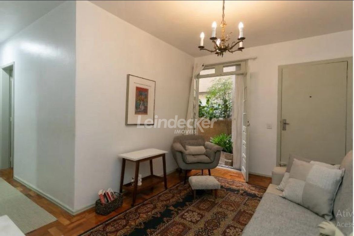 Apartamento térreo, com 3 dormitórios (um deles atualmente transformado em sala de TV/jantar) living; cozinha; banheiro com ventilação natural e duas áreas externas, sendo uma pela sala de estar e a outra pela área de serviço. Conta com janelas antirruído e fica mobiliado.