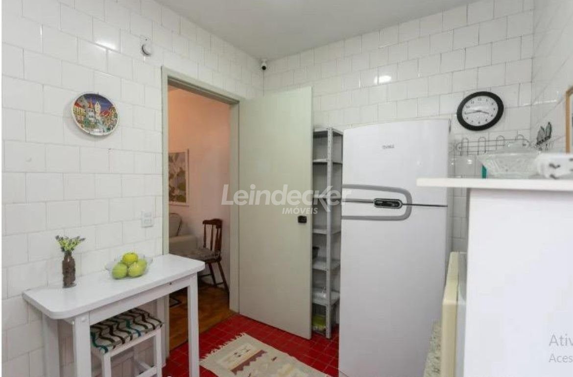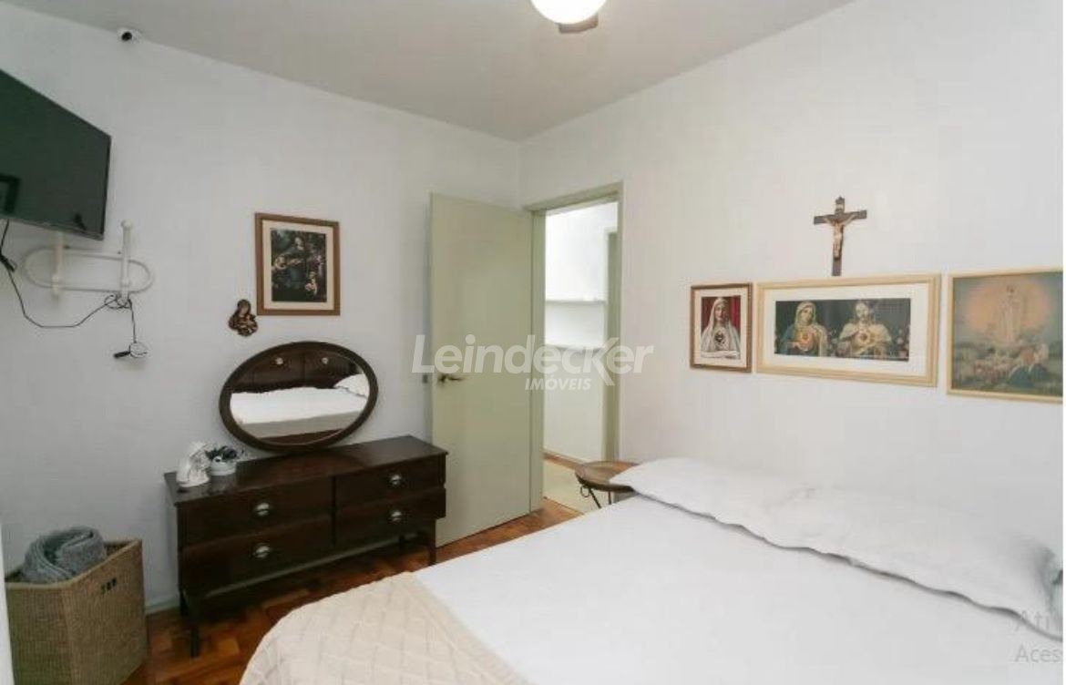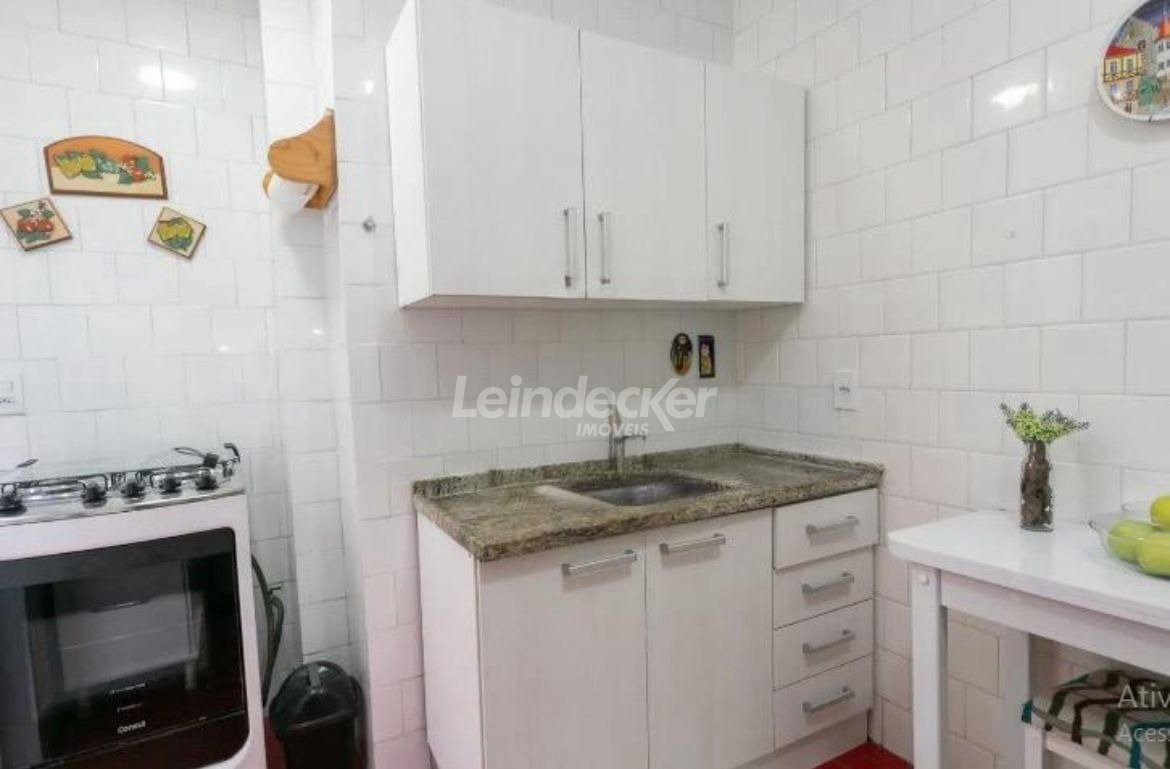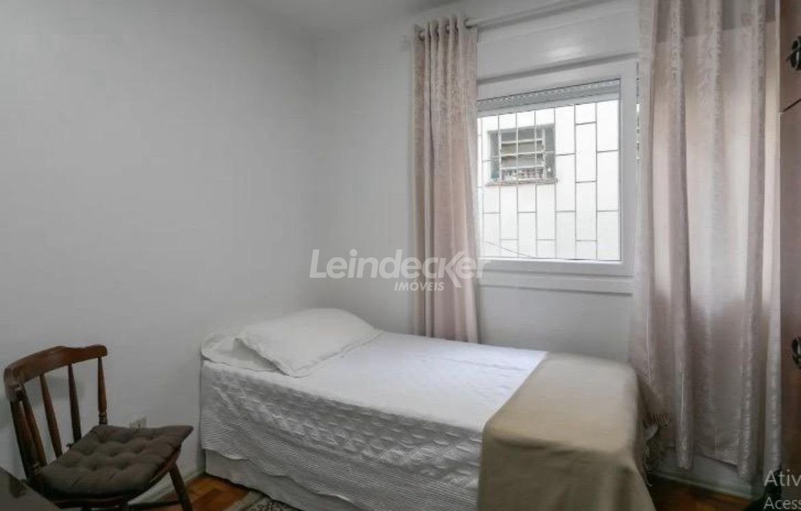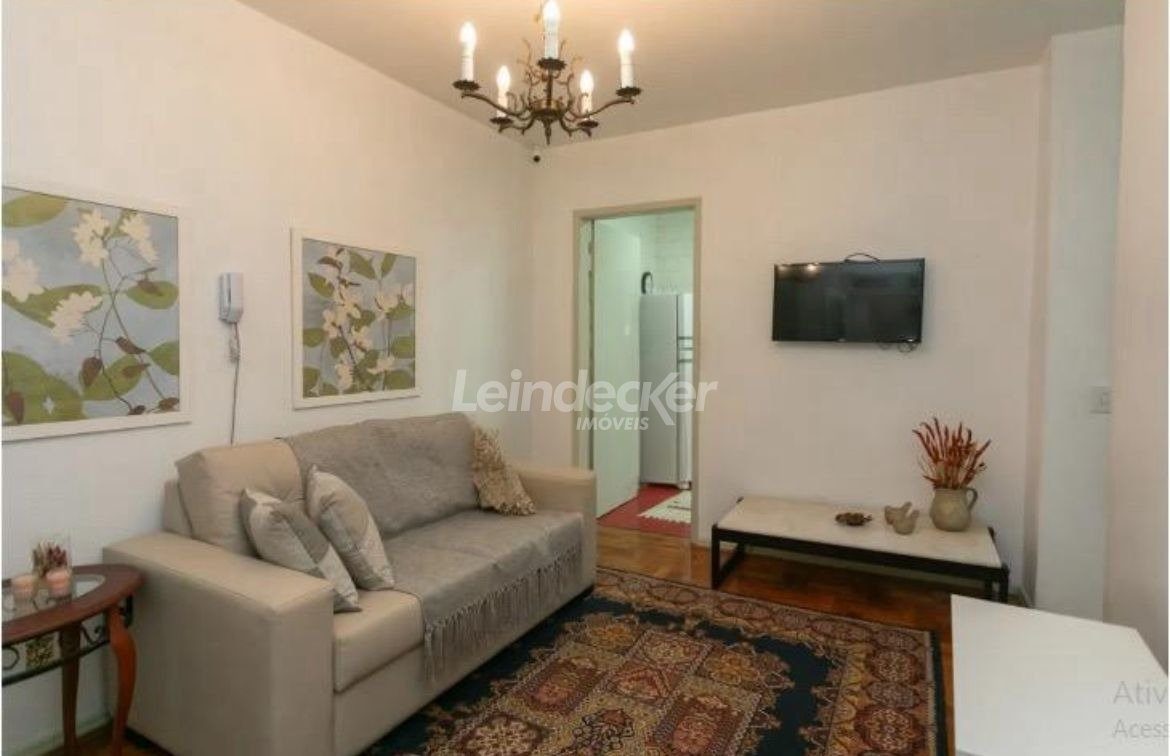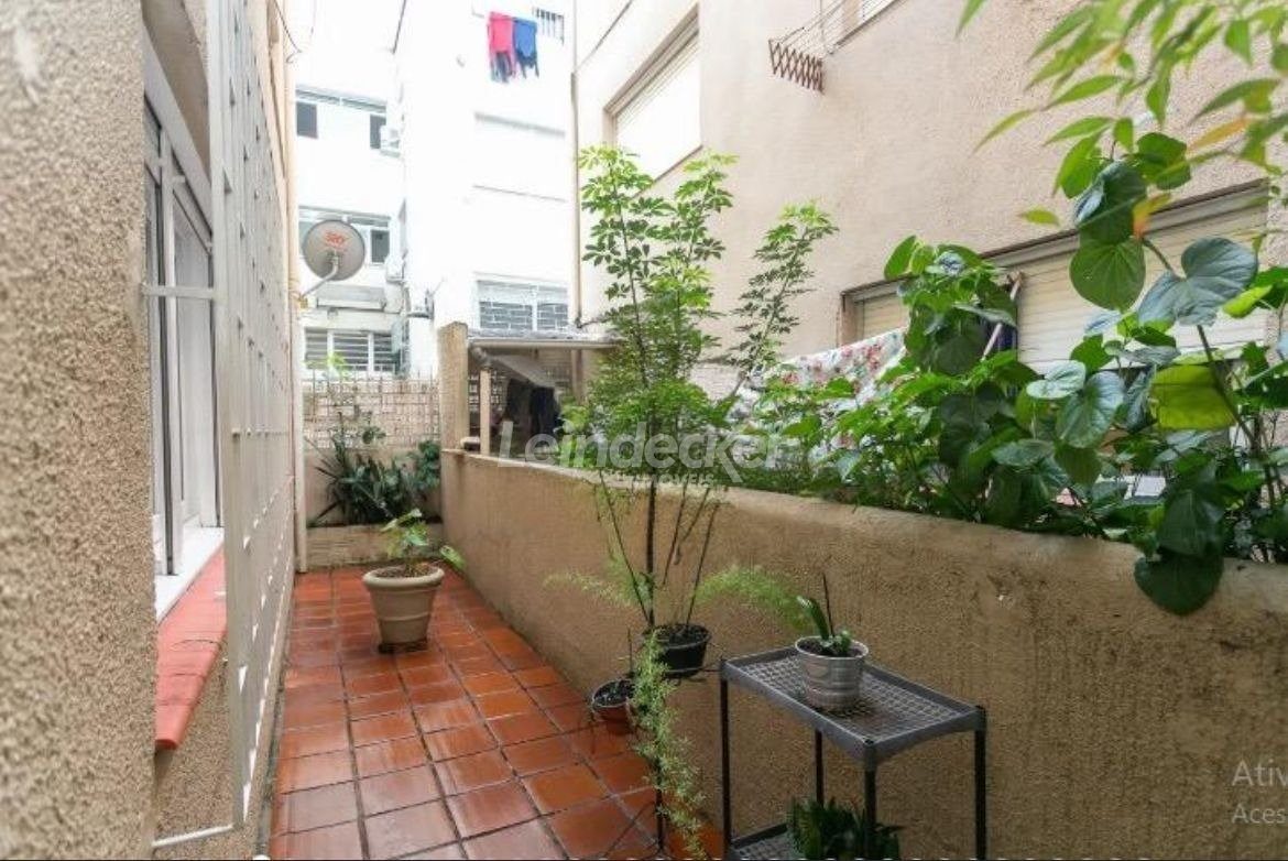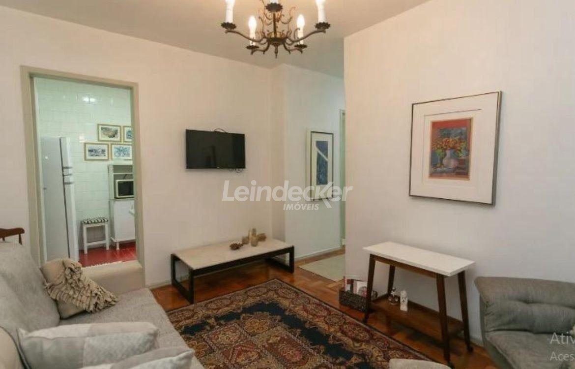 Apartamento térreo, com 3 dormitórios (um deles atualmente transformado em sala de TV/jantar) living; cozinha; banheiro com ventilação natural e duas áreas externas, sendo uma pela sala de estar e a outra pela área de serviço. Conta com janelas antirruído e fica mobiliado.