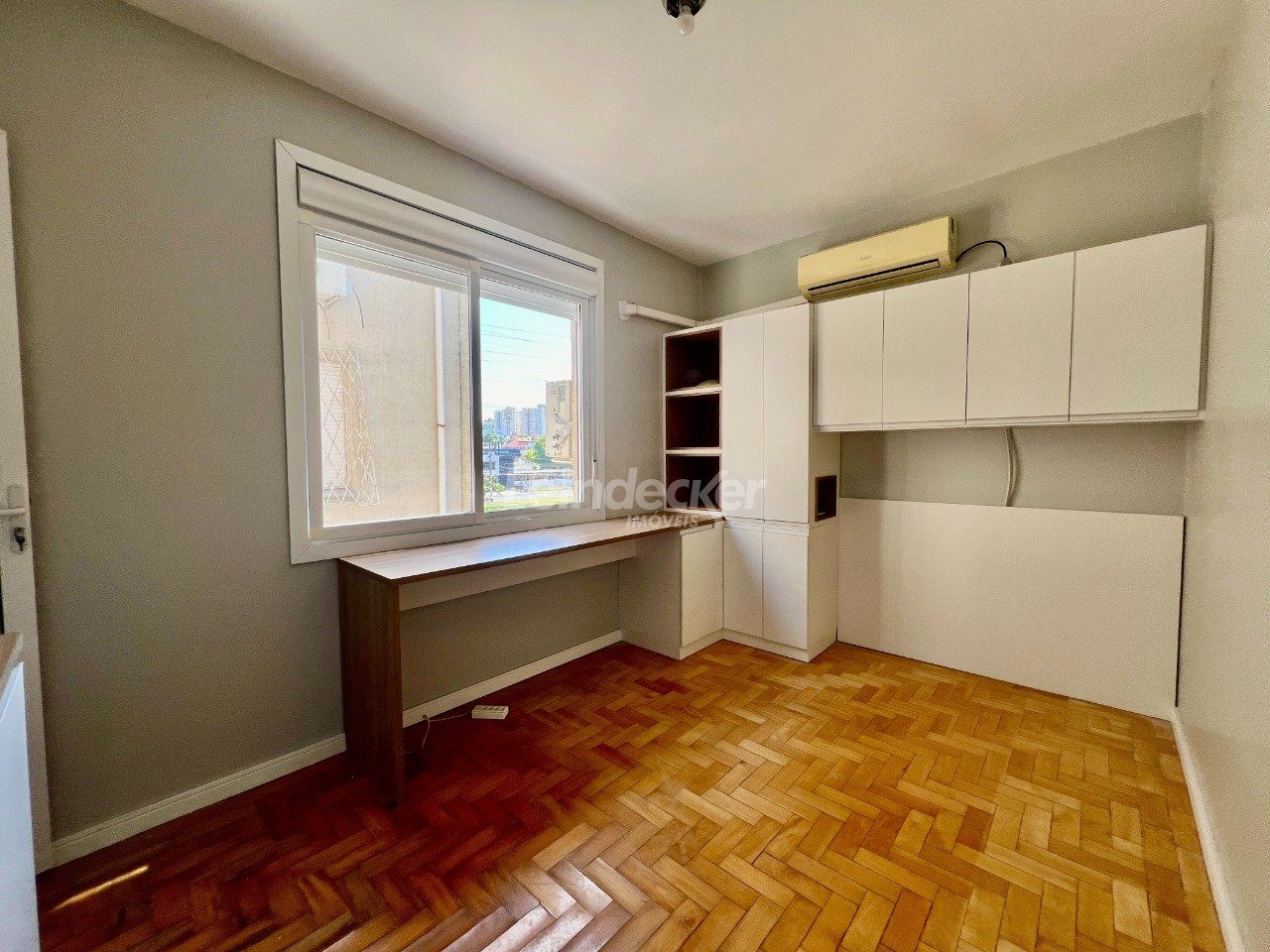 Apartamento de 04 dormitórios transformados em 03, pois um foi aberto, para aumentar o living. Fácil reversão. No dormitório do casal foi instalado um lavabo. Living para 03 ambientes, cozinha finamente mobiliada com área de serviço separada, banheiro social com ventilação natural. Todas as esquadrias novas, piso parquet em todos os ambientes. Imóvel de fundos com ótima posição solar. Imóvel desocupado. Solicite sua visita ainda hoje