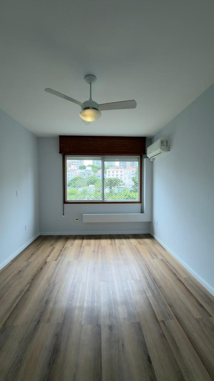 Apartamento de 2 dormitórios; living com sacada; banheiro com ventilação natural; cozinha; área de serviço separada; dependência de empregada e banheiro auxiliar. Fica de frente com vista e sol da manhã. Imóvel reformado, inclusive a rede elétrica e hidráulica, com espera para aquecimento a gás. Conta com box de garagem coberta escriturada.