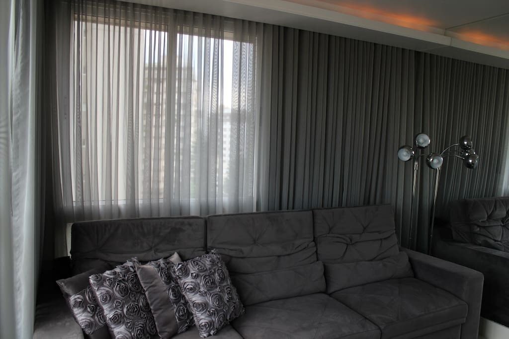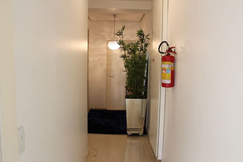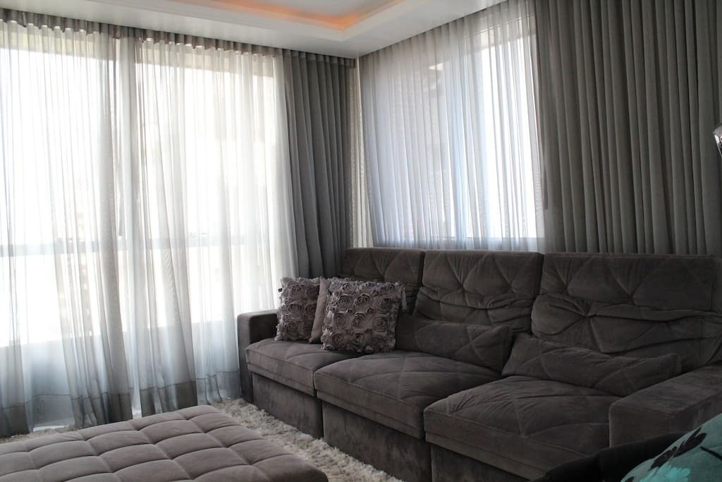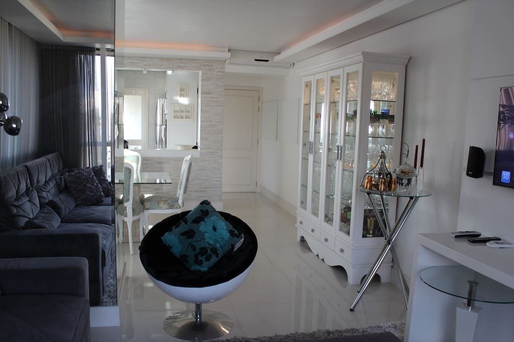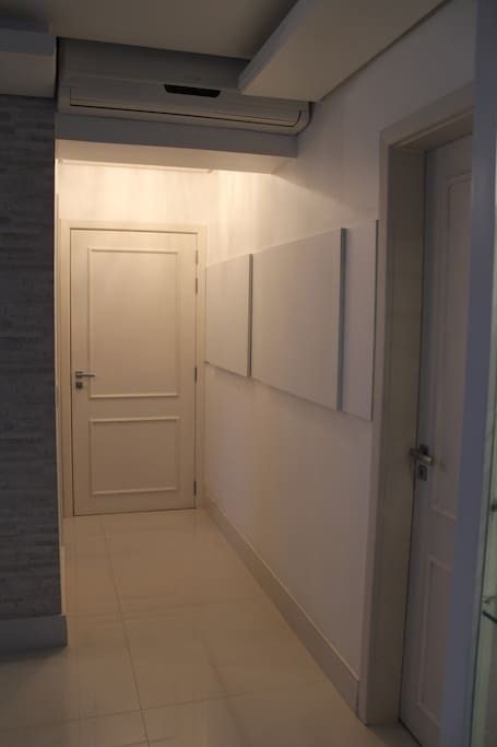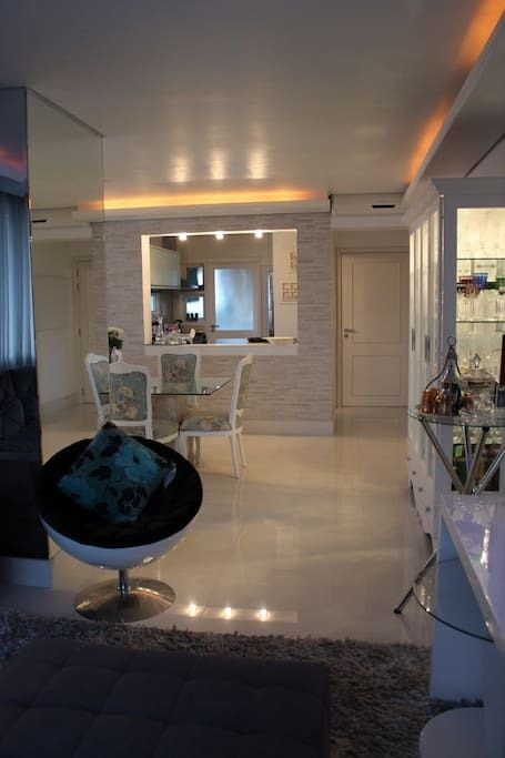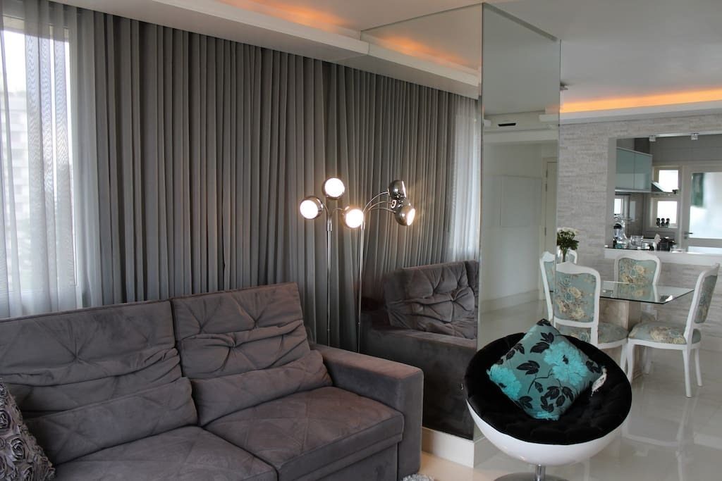 Living com porcelanato 80x80 e dormitórios com piso vinílico.