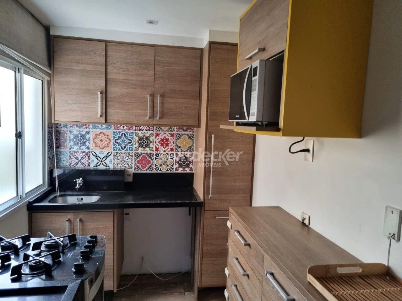Apartamento Garden térreo (com pátio privativo e deck), TOTALMENTE MOBILIADO (Porteira Fechada), 2 quartos, living 2 ambientes com sacada e churrasqueira, banheiro social, cozinha e área de serviço. Apartamento iluminado e arejado. Além disso, o apartamento já conta com móveis fixos planejados, 2 ar-condicionados/ split e todos os eletros, proporcionando todo o conforto necessário para os seus moradores.