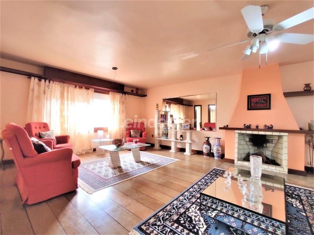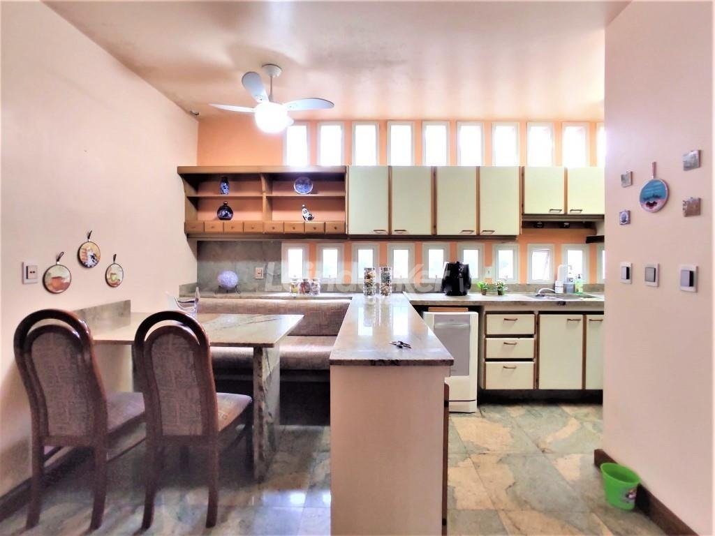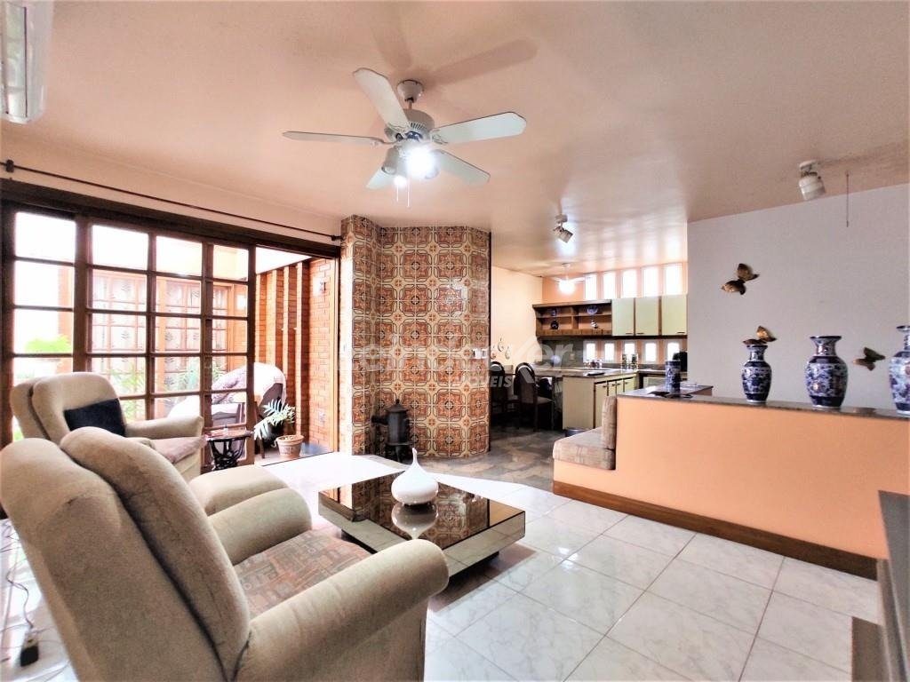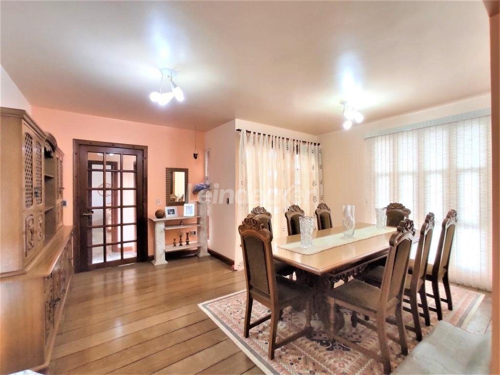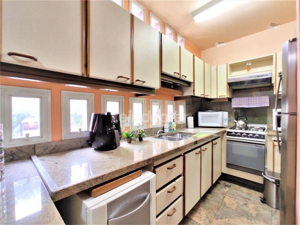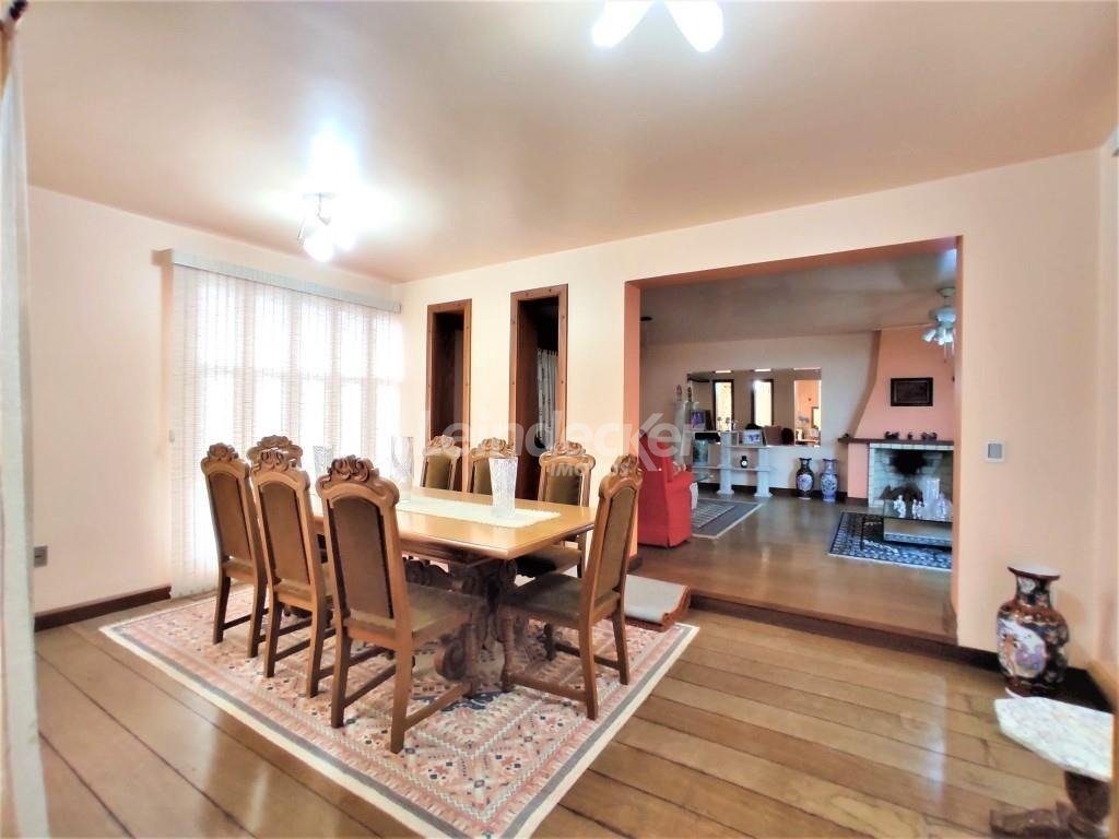 No piso superior salas amplas com 2 ambientes com lareira, mais um ambiente com sala de jantar, todos em piso de madeira taboão. Jardim de Inverno com teto e laterais de vidro, lavabo em mármore. Hal de entrada, cozinha americana montada toda em pedra, sala de estar/TV todos em piso frio. Corredor, suíte 1 (quarto e banheiro), suíte 2(quarto/banheiro+ hidro).