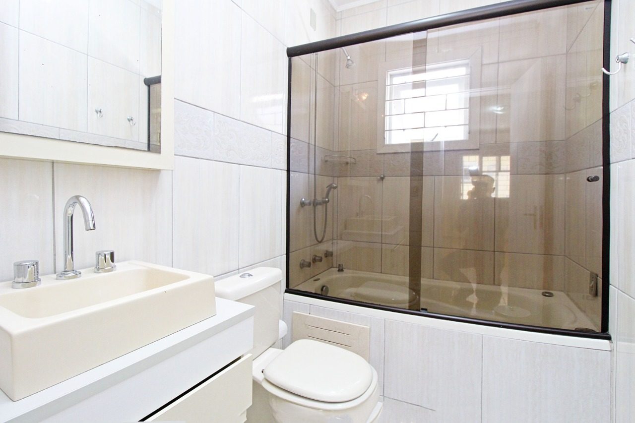 Imóvel ensolarado, ventilação cruzada, 1 bela suíte, com ar Split, living para 2 ambientes, lareira, cozinha ampla, banho social decorado, lavabo, área de serviço, água quente, churrasqueira e box coberto para 1 automóvel e 1 box descoberto.