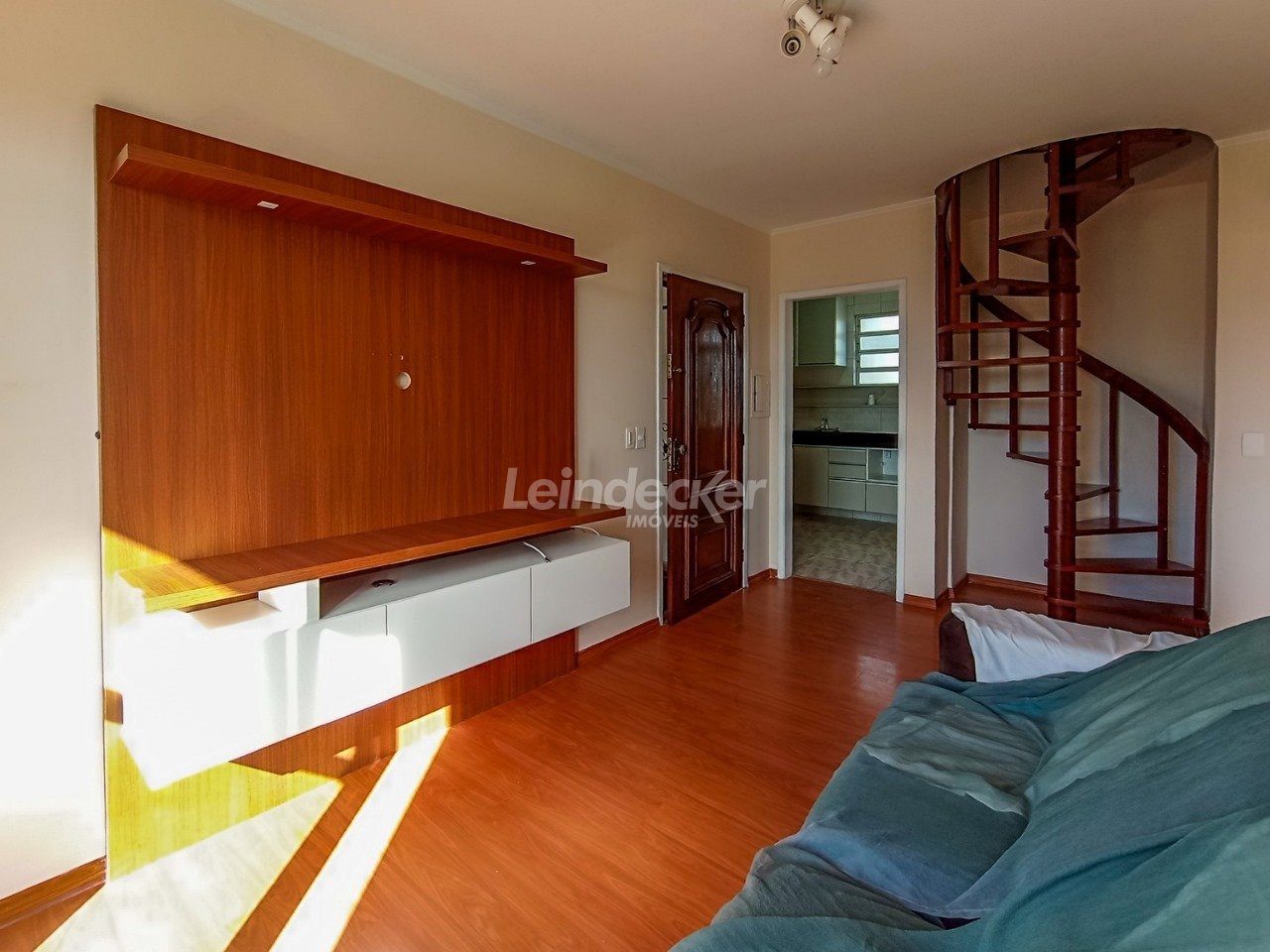 Cobertura com 2 dormitórios, banheiro social com aquecimento a gás e ventilação natural, copa/ cozinha com armários planejados, living com sacada.