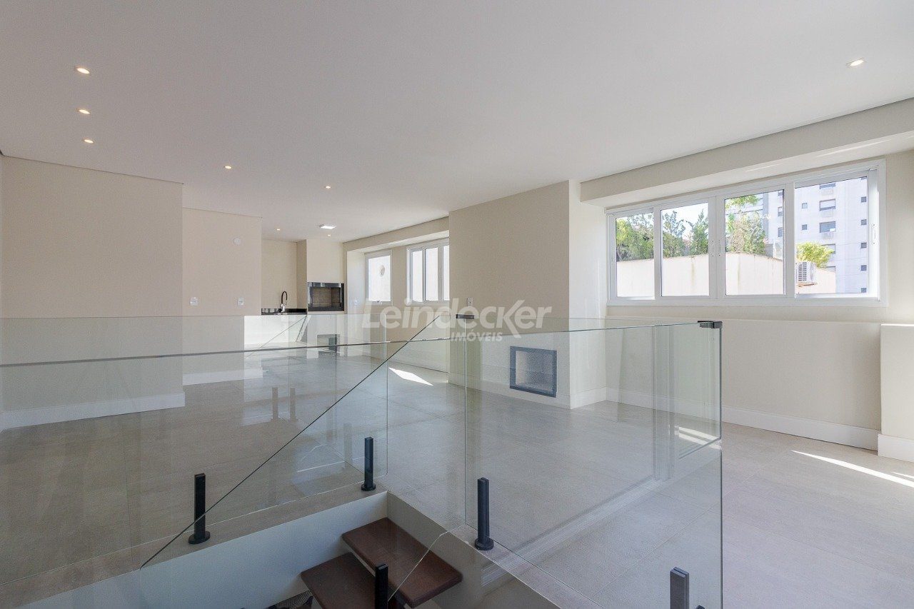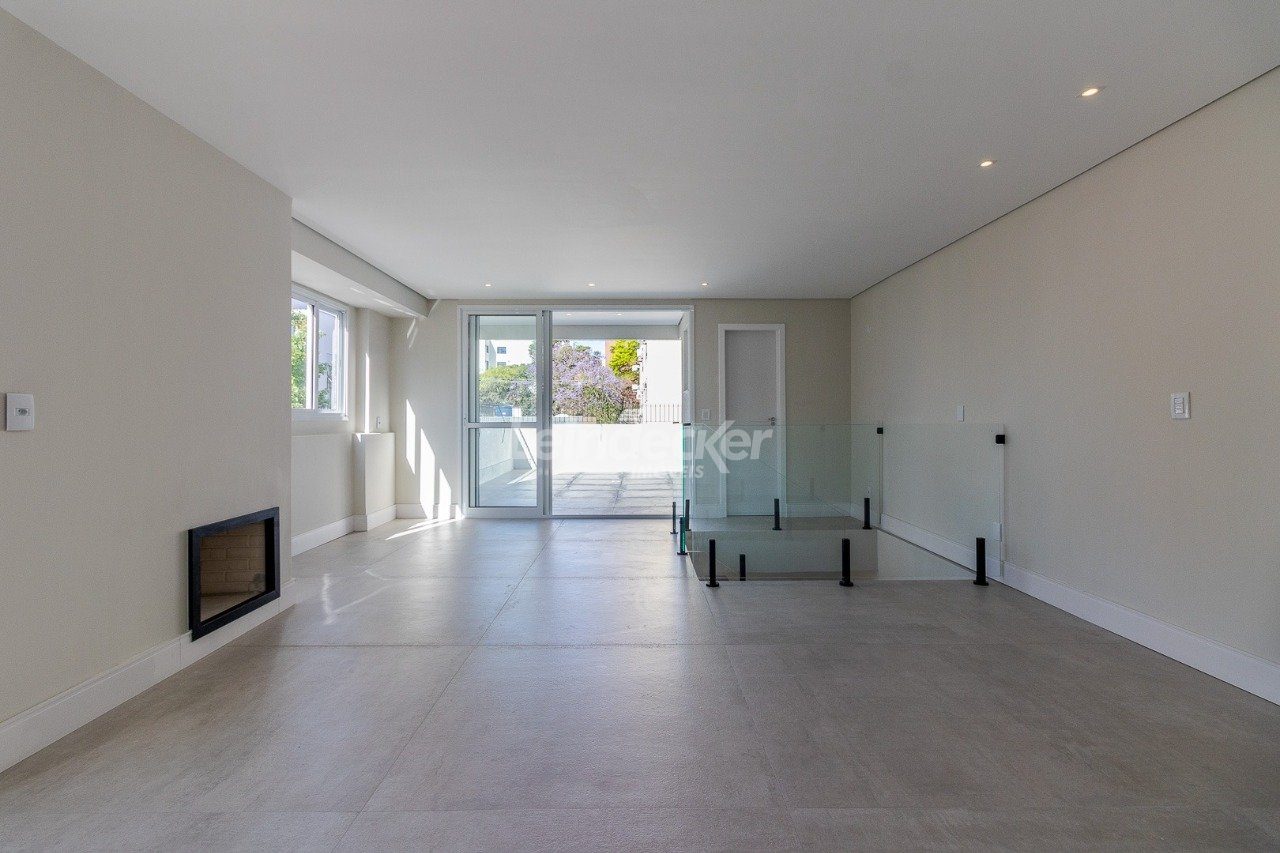 No segundo piso o amplo salão interno salão possui lavabo, churrasqueira e lareira. O terraço possui 30m².