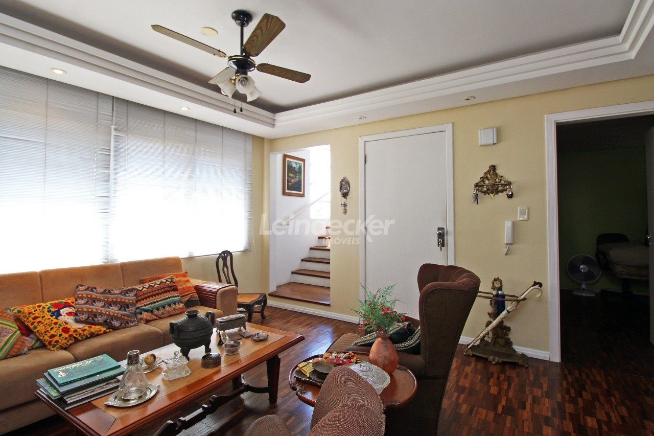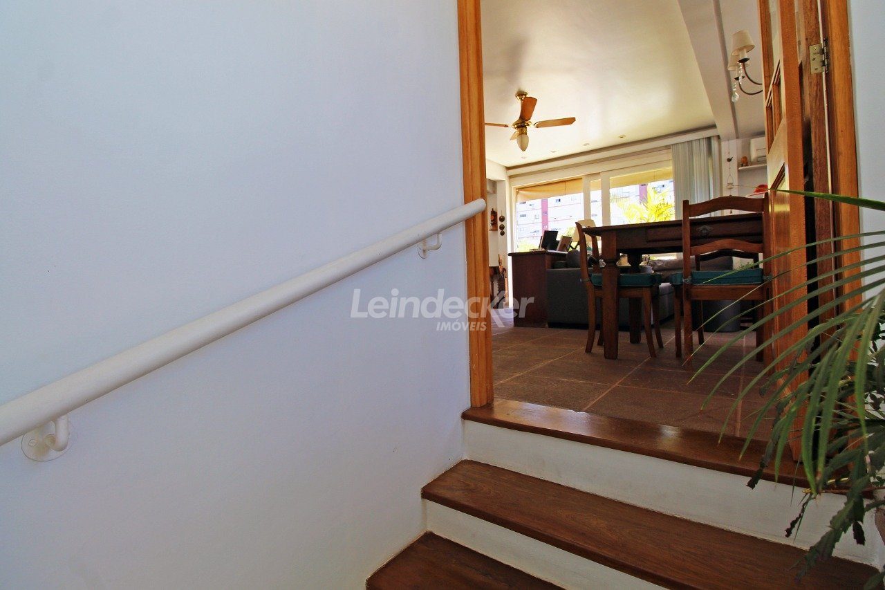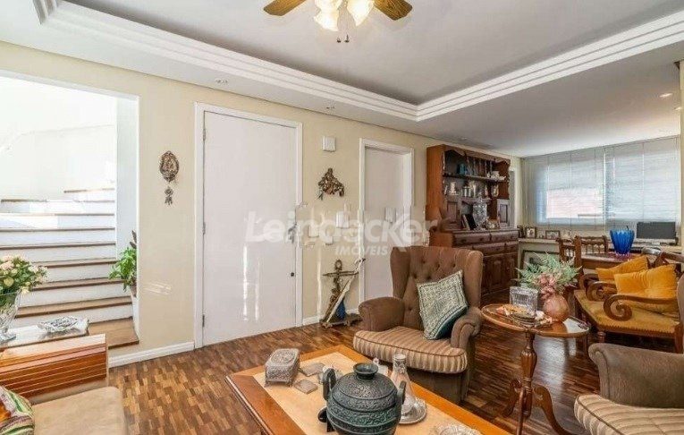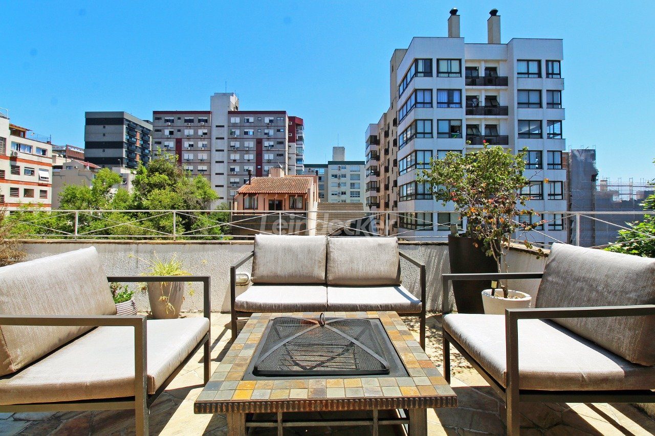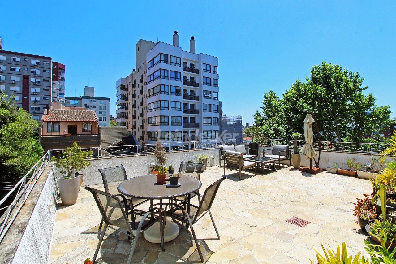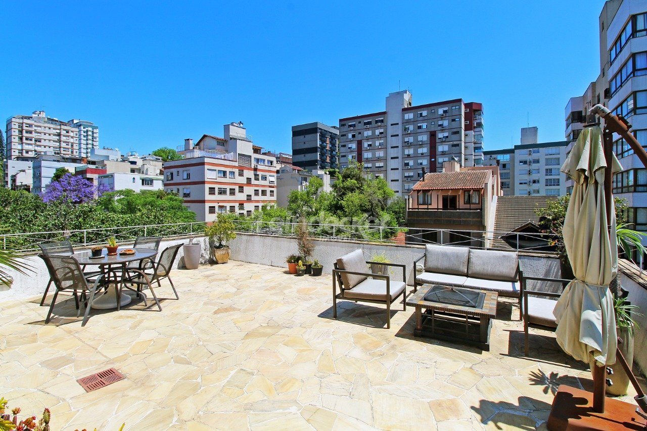 Cobertura com amplo terraço com 4 quartos, sendo duas suítes, com nobre localização no bairro Mont Serrat em Porto Alegre com 1 vaga de garagem. O primeiro pavimento é composto pelos quatros dormitórios, sendo duas suítes, banheiro social e sala com 2 ambientes. A larga e confortável escada da acesso a parte superior, que é composta por com churrasqueira, lareira, sala de tv e banheiro.