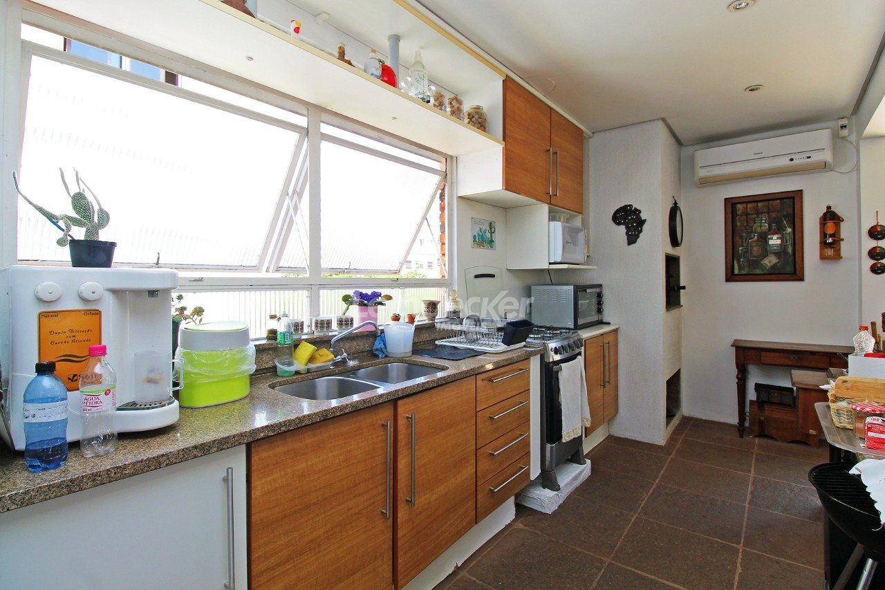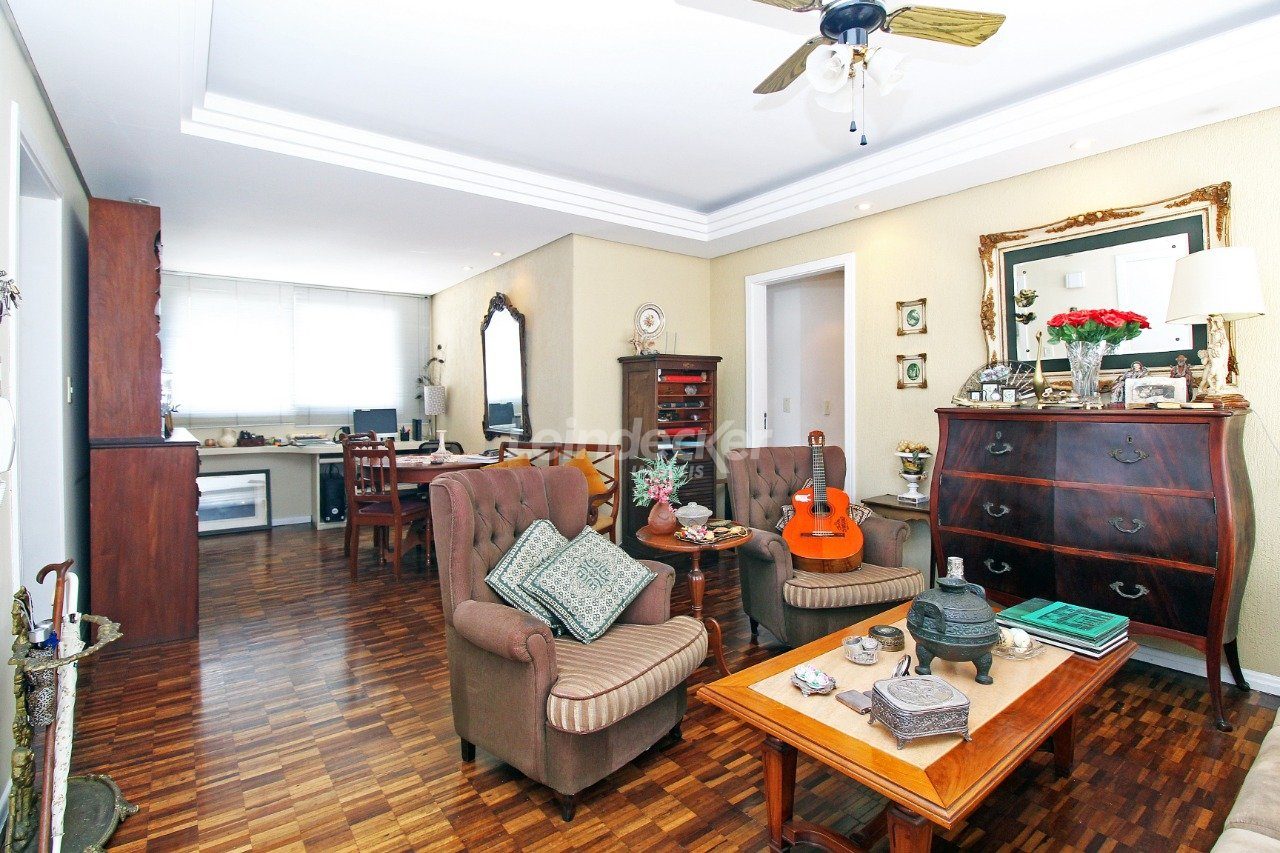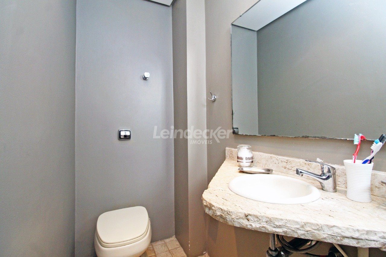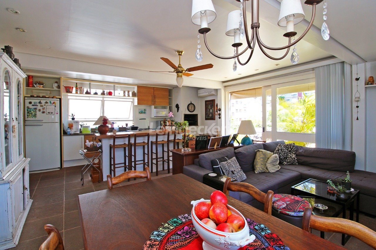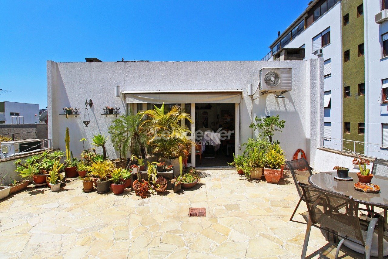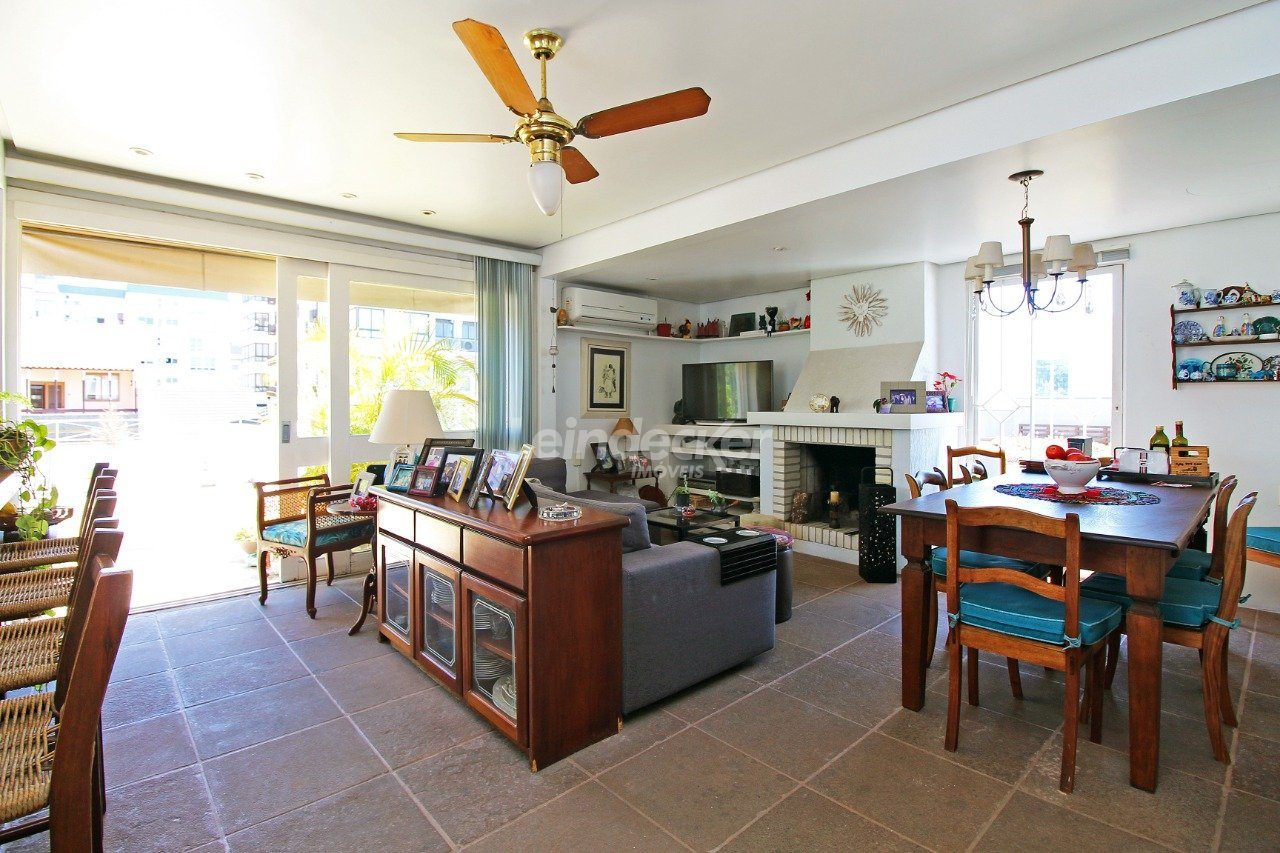 Cobertura com amplo terraço com 4 quartos, sendo duas suítes, com nobre localização no bairro Mont Serrat em Porto Alegre com 1 vaga de garagem. O primeiro pavimento é composto pelos quatros dormitórios, sendo duas suítes, banheiro social e sala com 2 ambientes. A larga e confortável escada da acesso a parte superior, que é composta por com churrasqueira, lareira, sala de tv e banheiro.