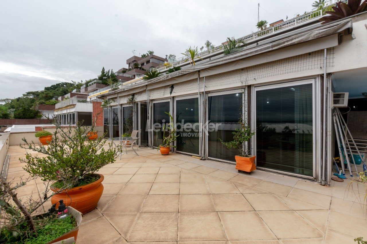 Imóvel diferenciado, com amplo terraço, piscina privativa com acesso à suíte, vista maravilhosa para o pôr do sol do Guaíba. Peças amplas e arejadas. São três quartos, sendo uma suíte, área social com quatro ambientes, lareira, sala de jantar, cozinha com bancada americana integrada, churrasqueira, despensa, área de serviço, hidráulica renovada, elétrica com voltagem 110 e 220V e duas vagas cobertas(lado a lado). Elevador panorâmico com elevador de carga acoplado e acesso direto para a residência na área social e de serviço. Cozinha, sala, dormitórios com ar condicionado(modelo split). Piscina com sistema de iluminação subaquática e timer com programação. Condomínio com portaria 24 horas com hall de entrada, próximo ao Estádio Beira-Rio, Parque Gigante, Shopping Pontal e Pólo jurídico da cidade. Conheça este imóvel! Ligue e solicite visita