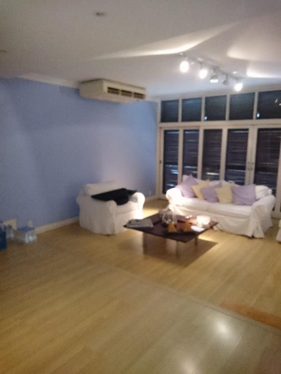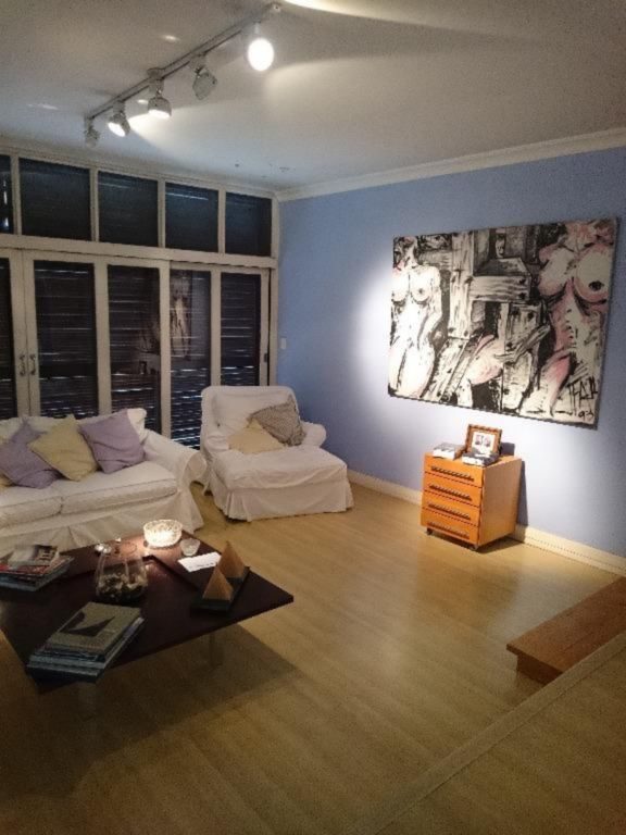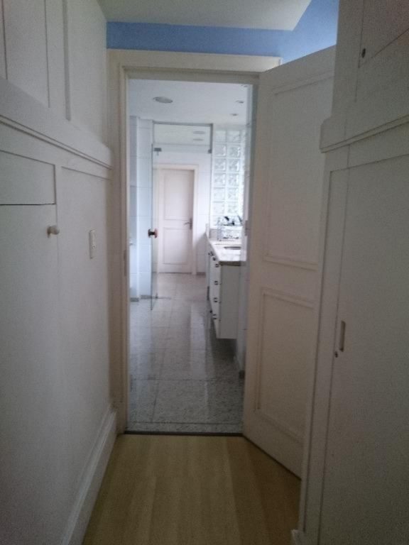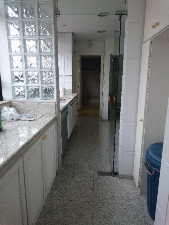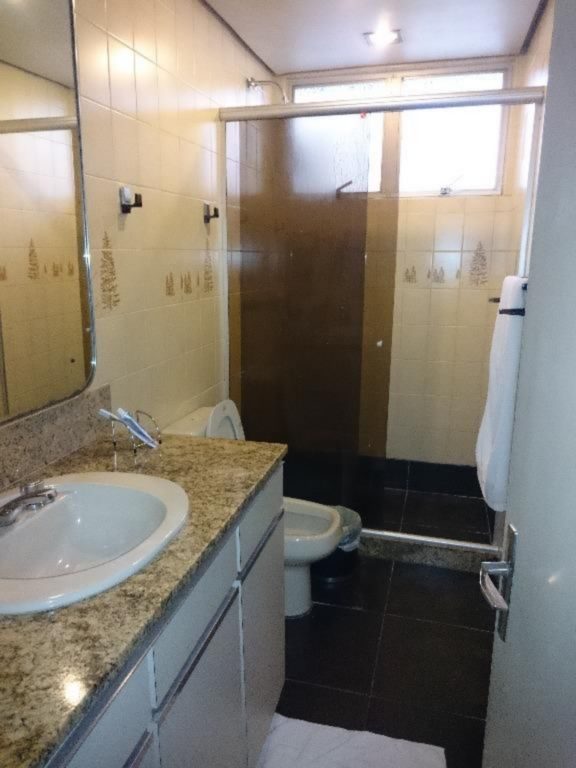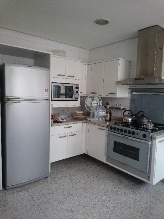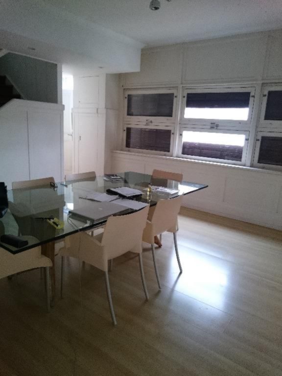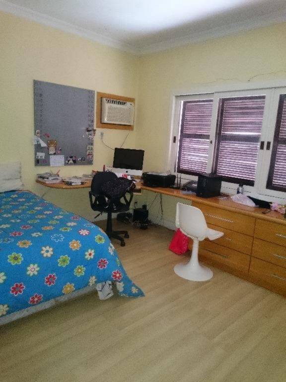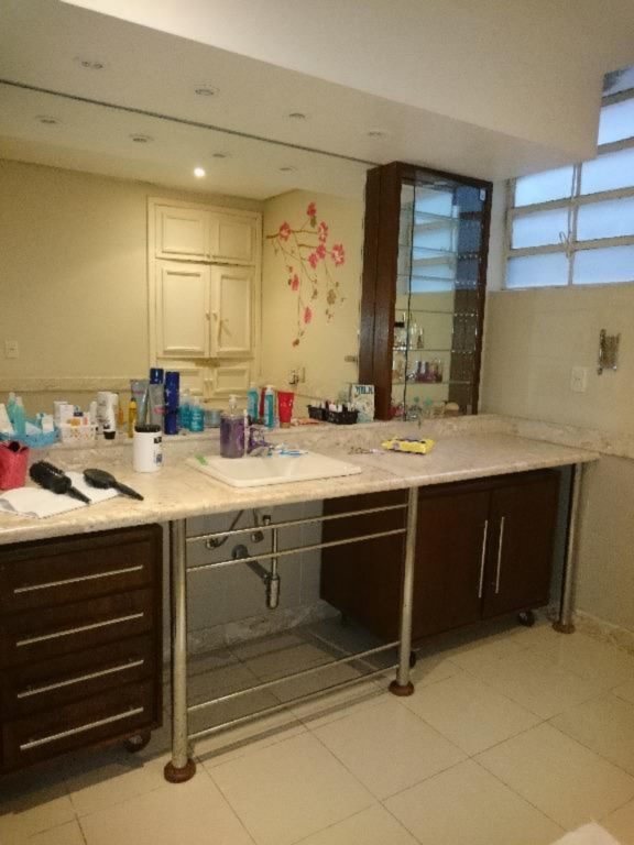 1º pavimento: 3 dormitórios sendo 1 suite, estar com sacada, jantar, banheiro social, circulação com rouparia, cozinha, dependência de empregada completa e ar condicionado.