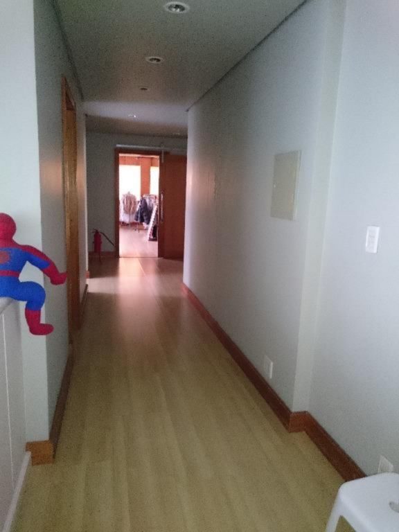 2º pavimento: 1 suite master com lareira, sacada fechada, 2 splits, salão com churrasqueira, lavabo, lavanderia e 1 vaga de garagem fechada.