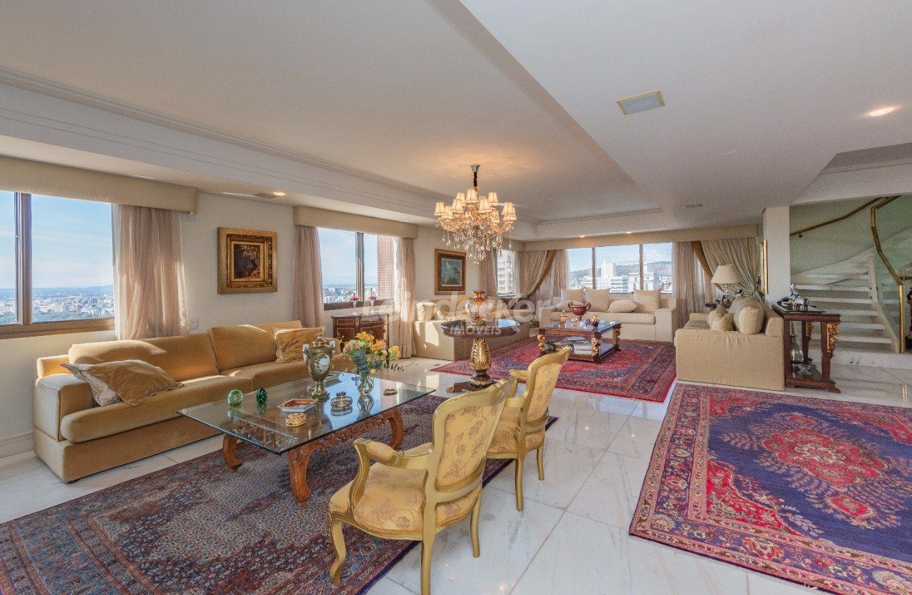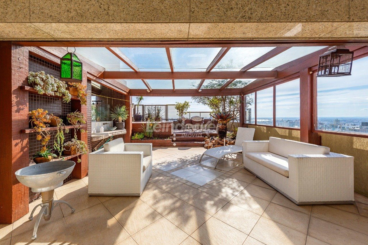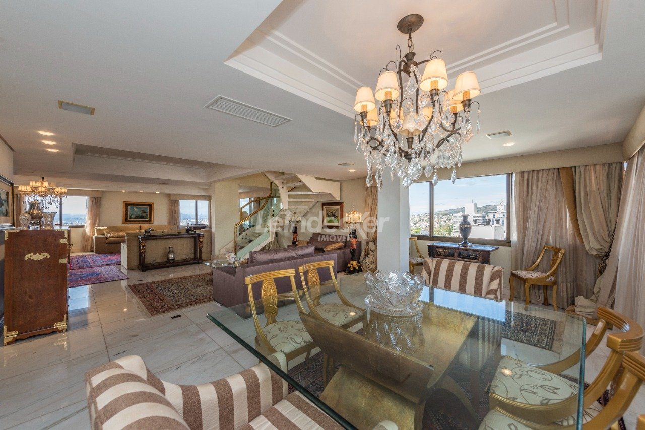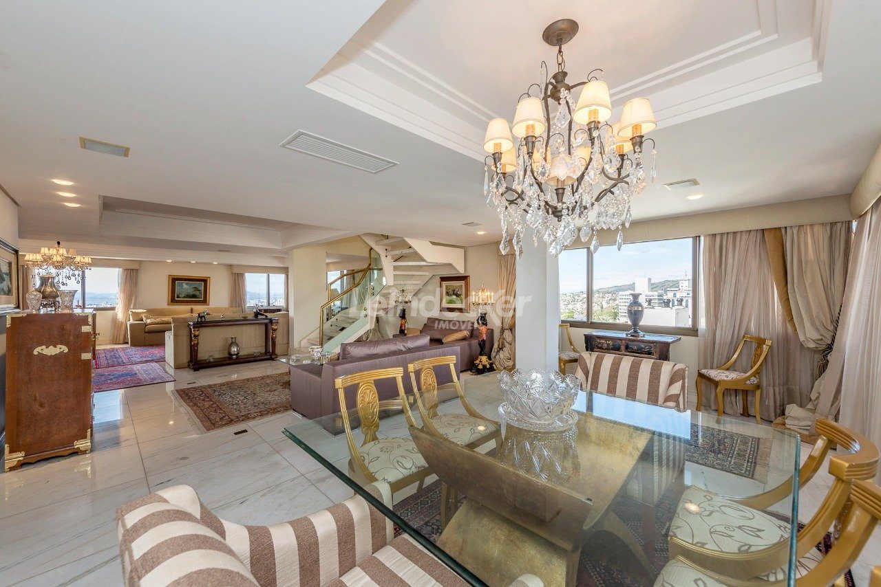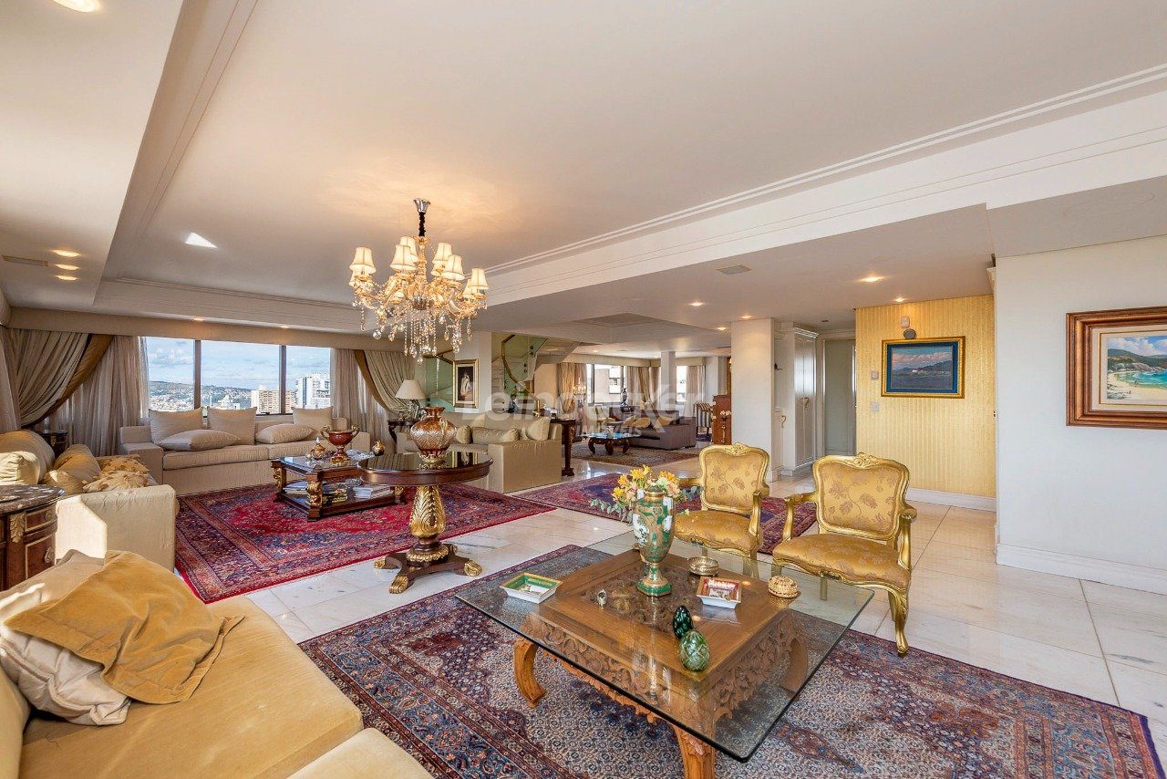 Cobertura em ponto mais alto de porto alegre, com vista de 360º, empresário de mudança para o exterior vende a cobertura com 601m² e requintado acabamento. 03 (três) suítes, sendo uma delas máster com estar íntimo, closet e hidro, com 80m²;Closet em todos os quartos, e as 03(três) suítes podem ser transformadas em 04 (quatro) ou 05(cinco) dormitórios; Armários laqueados com vitrais franceses; 02 (dois) lavabos; Área social com 300m² ;Piso em mármore italiano; Escadarias em mármore e vidro; Rebaixe em gesso e sistema de som em todos ambientes, inclusive banheiros e piscina, ar central quente e frio; Lareira ;Home theater;Copa/cozinha com passa-pratos e piso trabalhado em granito e latão;Lavanderia;Dependência de empregada com banheiro;Portas duplas na entrada dos dois andares com hall decorado;Chapelaria;Tecidos das paredes diretamente da indonésia;02 elevadores codificados que atendem os dois andares da cobertura;Amplo terraço com solarium, pista de dança e piscina sobre deck com batentes de trem;Jardinagem do takeda; 04 (quatro) vagas de garagem;Depósito.Condomínio com infra estrutura de lazer completa, segurança 24hs e vagas para visitantes.Possibilidade de venda com mobília!Valor sob consulta!