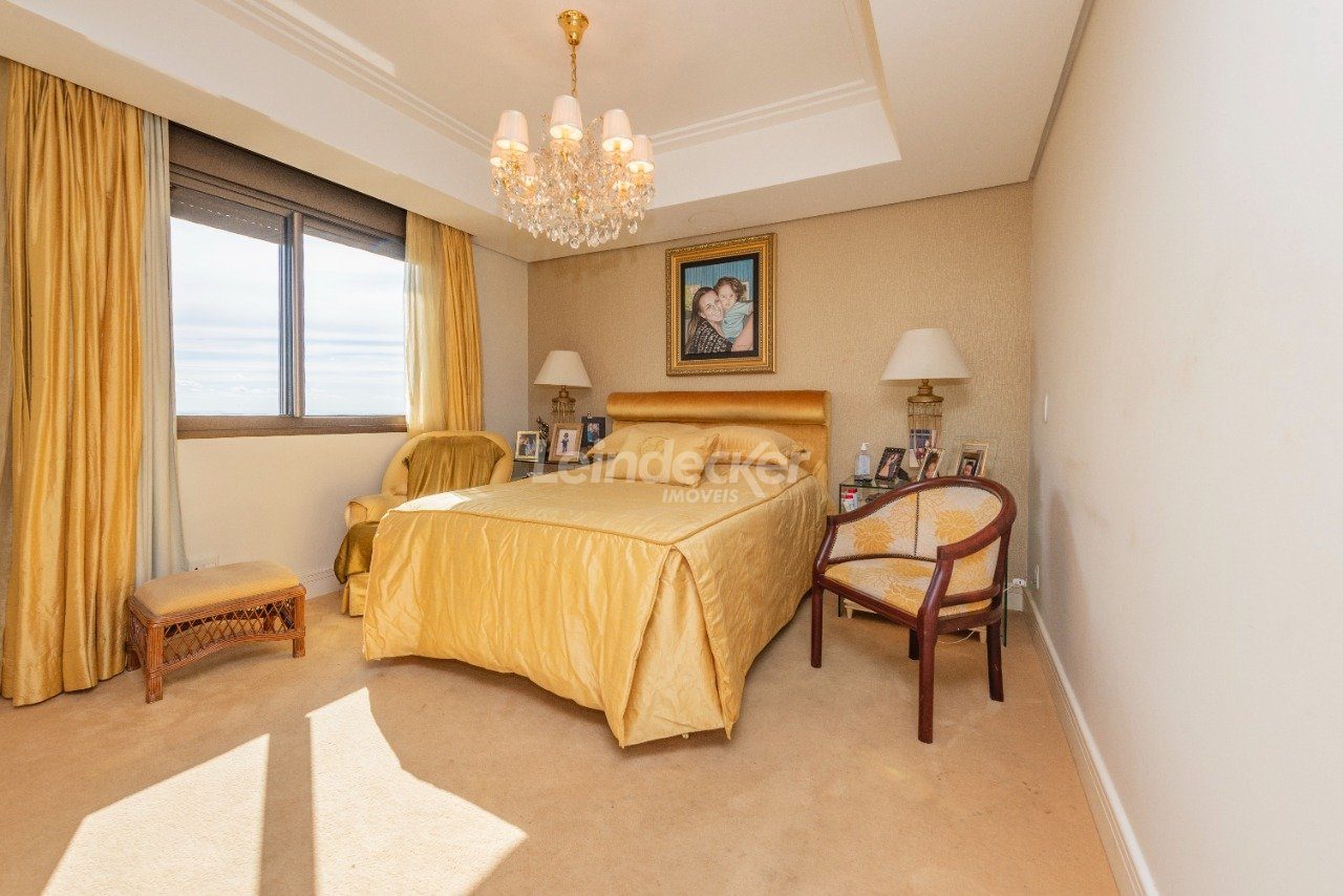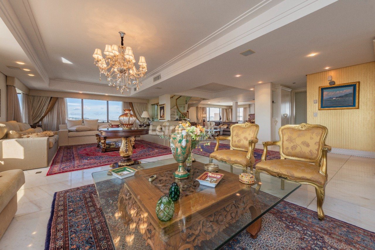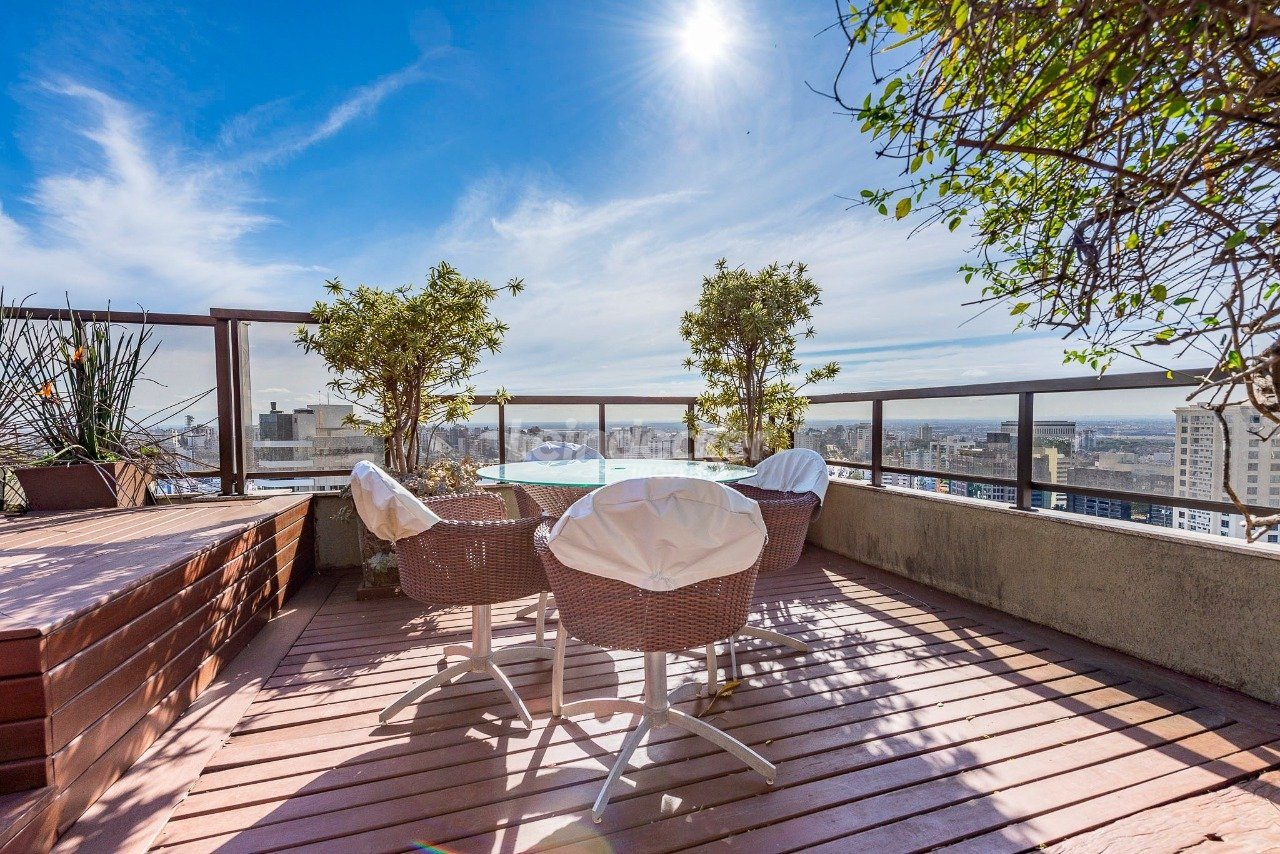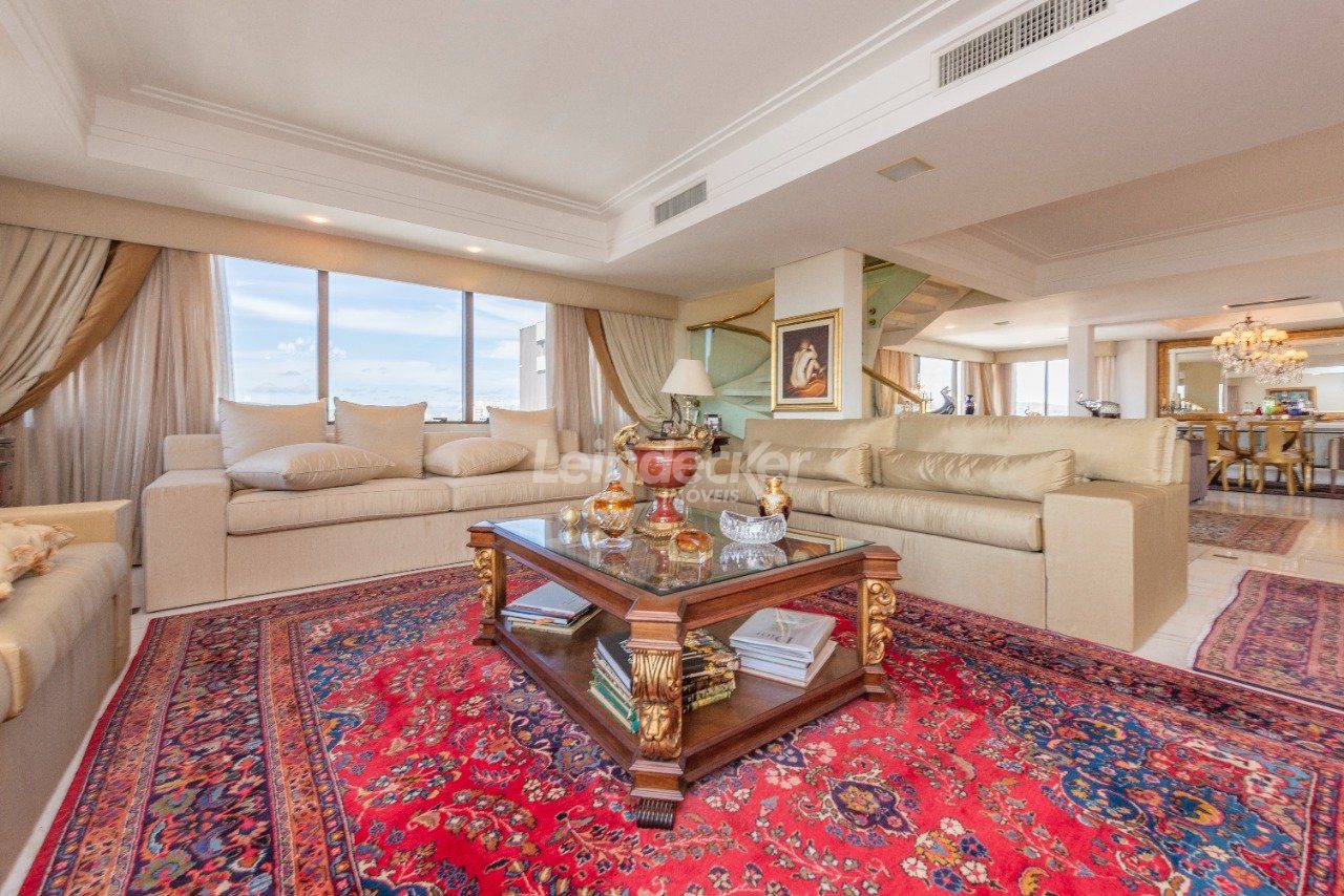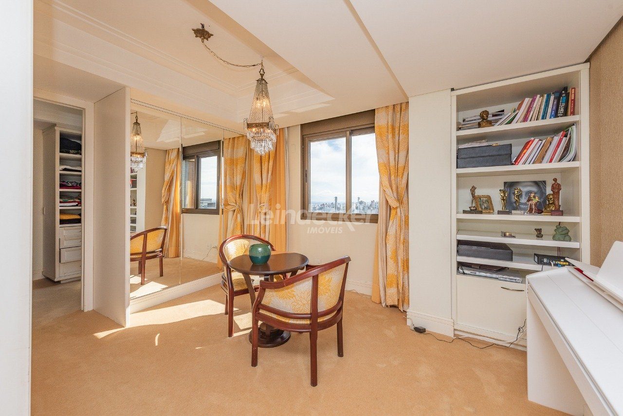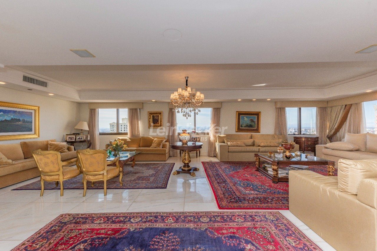 Cobertura em ponto mais alto de porto alegre, com vista de 360º, empresário de mudança para o exterior vende a cobertura com 601m² e requintado acabamento. 03 (três) suítes, sendo uma delas máster com estar íntimo, closet e hidro, com 80m²;Closet em todos os quartos, e as 03(três) suítes podem ser transformadas em 04 (quatro) ou 05(cinco) dormitórios; Armários laqueados com vitrais franceses; 02 (dois) lavabos; Área social com 300m² ;Piso em mármore italiano; Escadarias em mármore e vidro; Rebaixe em gesso e sistema de som em todos ambientes, inclusive banheiros e piscina, ar central quente e frio; Lareira ;Home theater;Copa/cozinha com passa-pratos e piso trabalhado em granito e latão;Lavanderia;Dependência de empregada com banheiro;Portas duplas na entrada dos dois andares com hall decorado;Chapelaria;Tecidos das paredes diretamente da indonésia;02 elevadores codificados que atendem os dois andares da cobertura;Amplo terraço com solarium, pista de dança e piscina sobre deck com batentes de trem;Jardinagem do takeda; 04 (quatro) vagas de garagem;Depósito.Condomínio com infra estrutura de lazer completa, segurança 24hs e vagas para visitantes.Possibilidade de venda com mobília!Valor sob consulta!