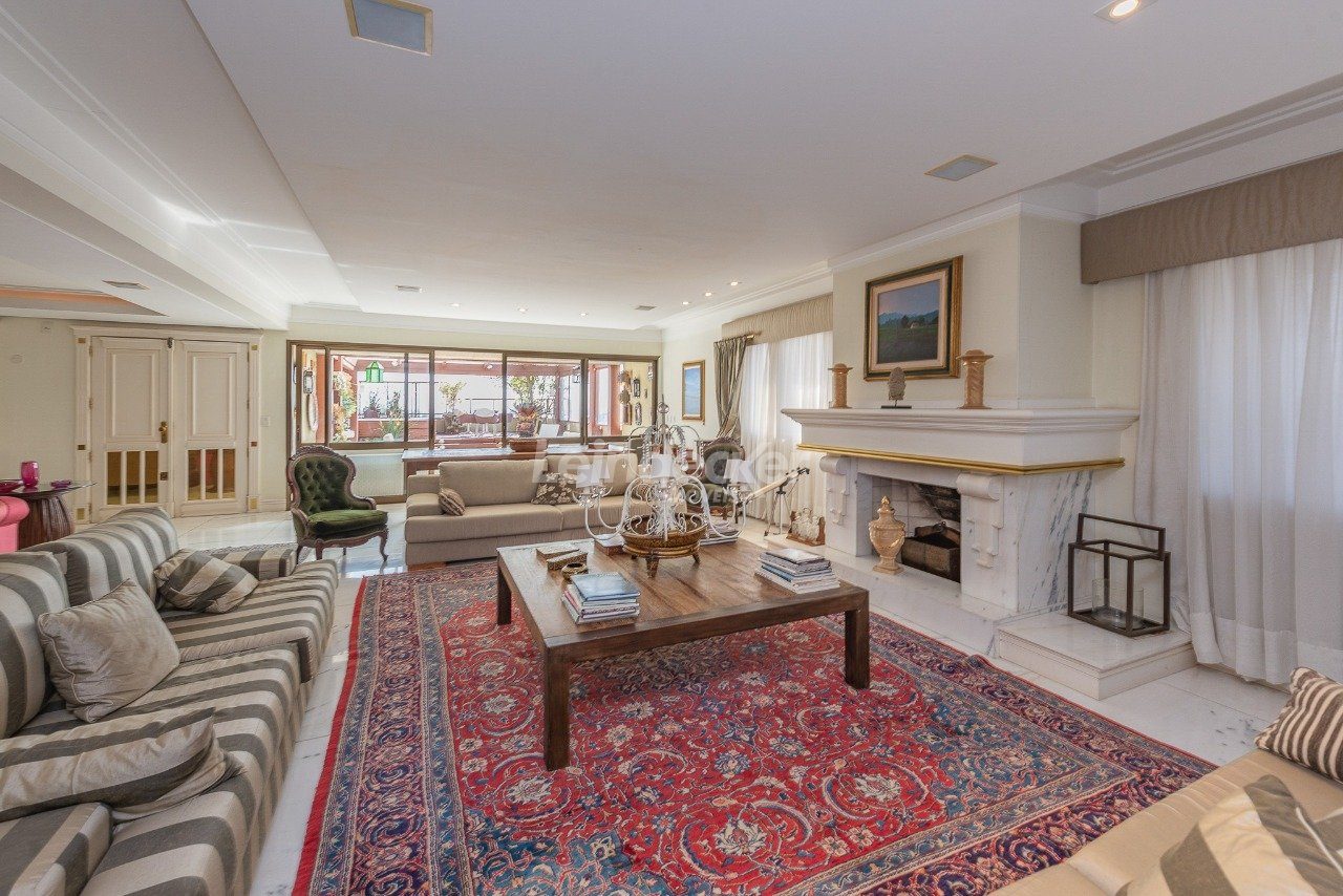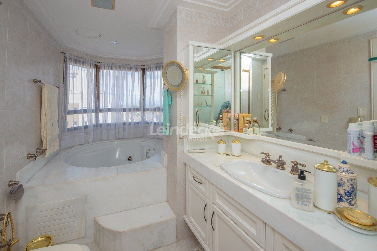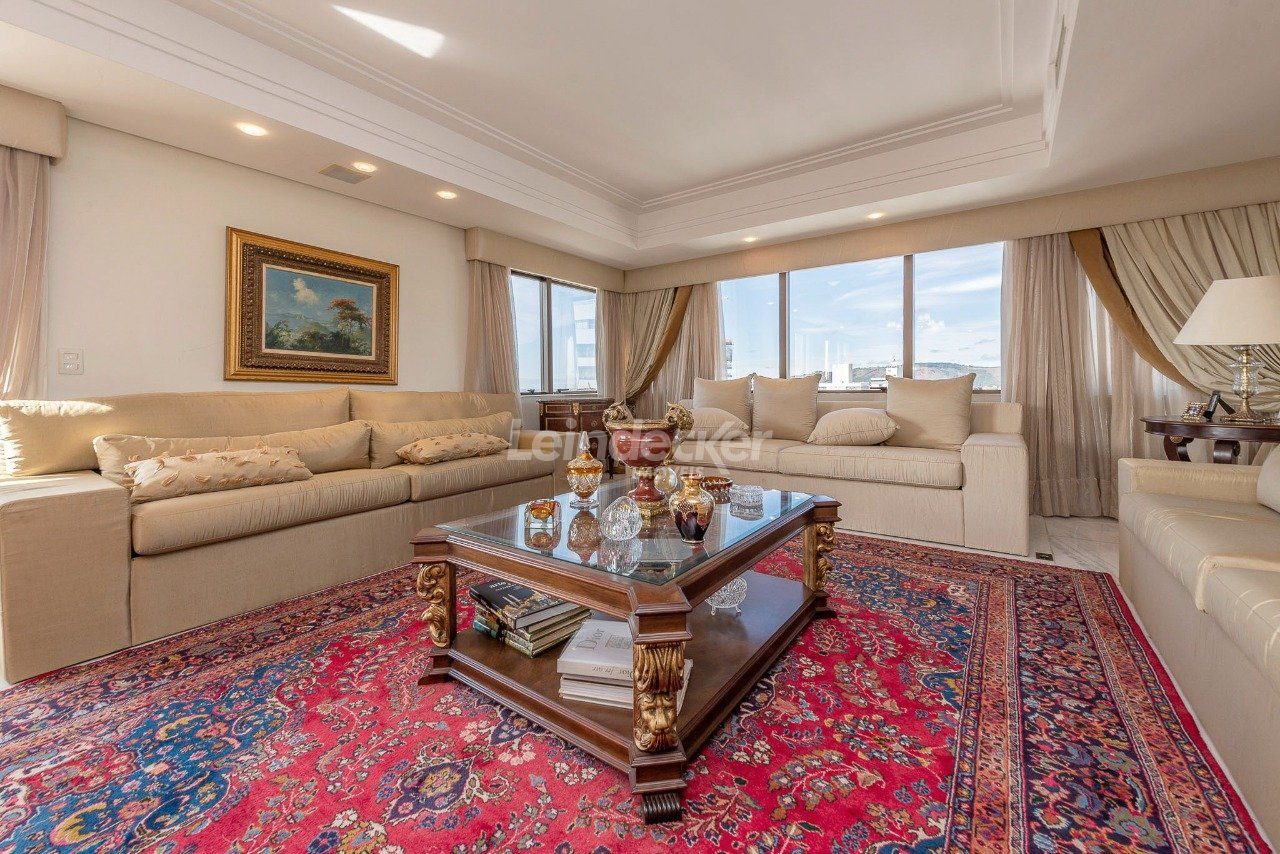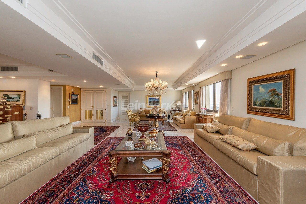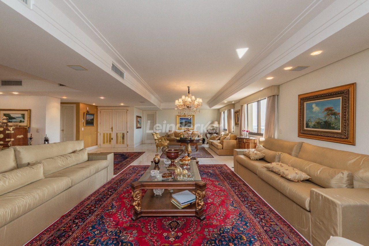 Cobertura em ponto mais alto de porto alegre, com vista de 360º, empresário de mudança para o exterior vende a cobertura com 601m² e requintado acabamento. 03 (três) suítes, sendo uma delas máster com estar íntimo, closet e hidro, com 80m²;Closet em todos os quartos, e as 03(três) suítes podem ser transformadas em 04 (quatro) ou 05(cinco) dormitórios; Armários laqueados com vitrais franceses; 02 (dois) lavabos; Área social com 300m² ;Piso em mármore italiano; Escadarias em mármore e vidro; Rebaixe em gesso e sistema de som em todos ambientes, inclusive banheiros e piscina, ar central quente e frio; Lareira ;Home theater;Copa/cozinha com passa-pratos e piso trabalhado em granito e latão;Lavanderia;Dependência de empregada com banheiro;Portas duplas na entrada dos dois andares com hall decorado;Chapelaria;Tecidos das paredes diretamente da indonésia;02 elevadores codificados que atendem os dois andares da cobertura;Amplo terraço com solarium, pista de dança e piscina sobre deck com batentes de trem;Jardinagem do takeda; 04 (quatro) vagas de garagem;Depósito.Condomínio com infra estrutura de lazer completa, segurança 24hs e vagas para visitantes.Possibilidade de venda com mobília!Valor sob consulta!