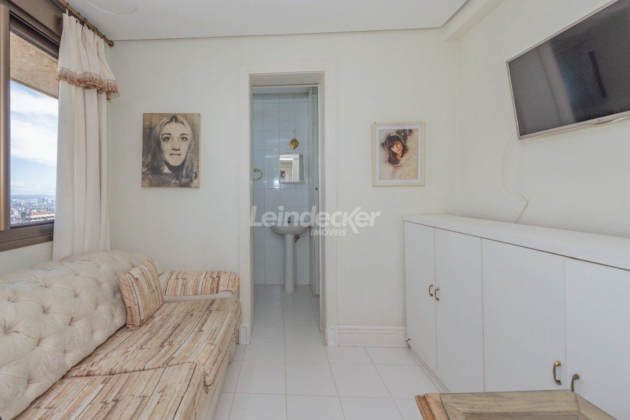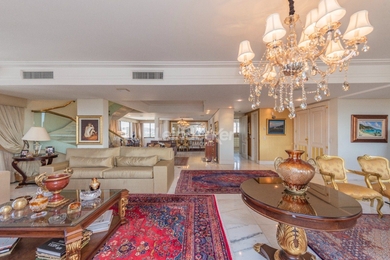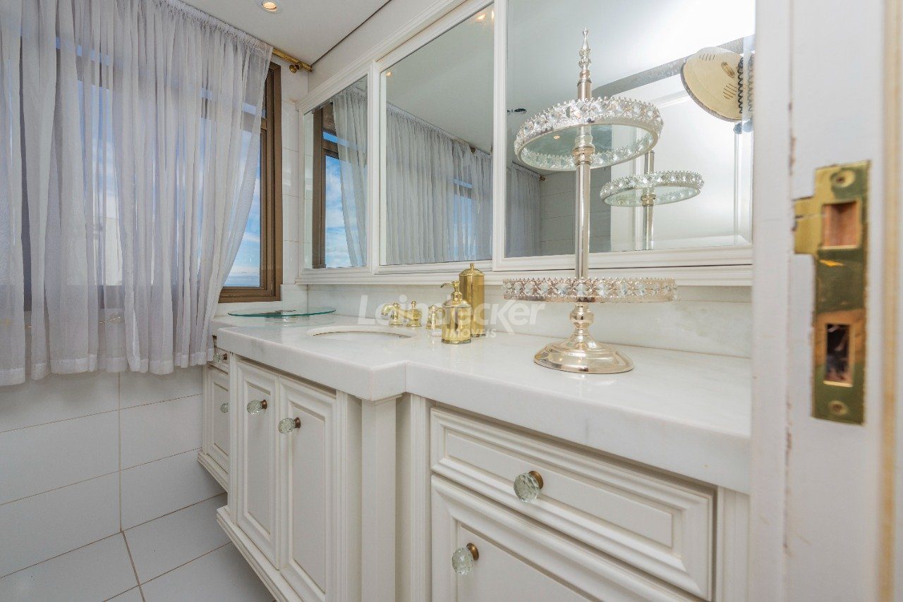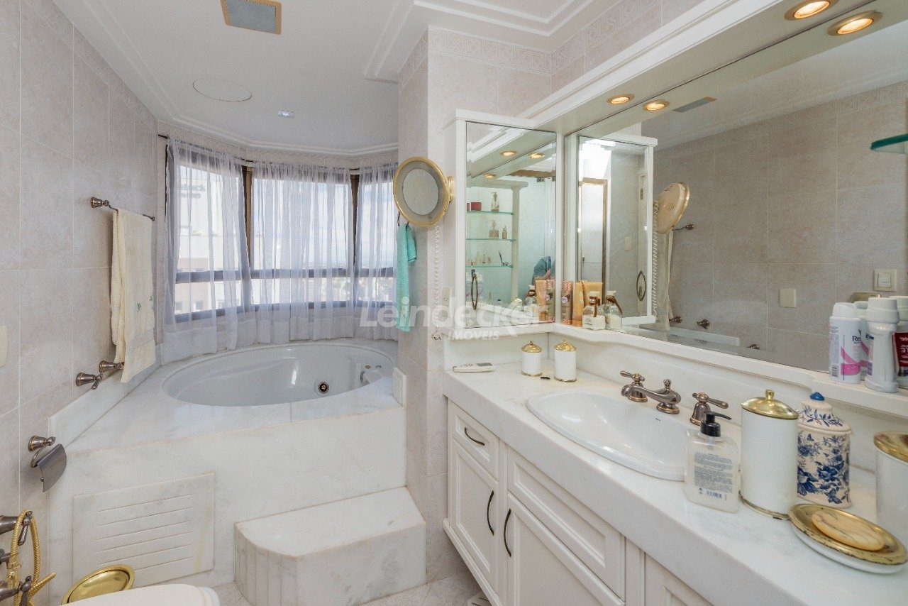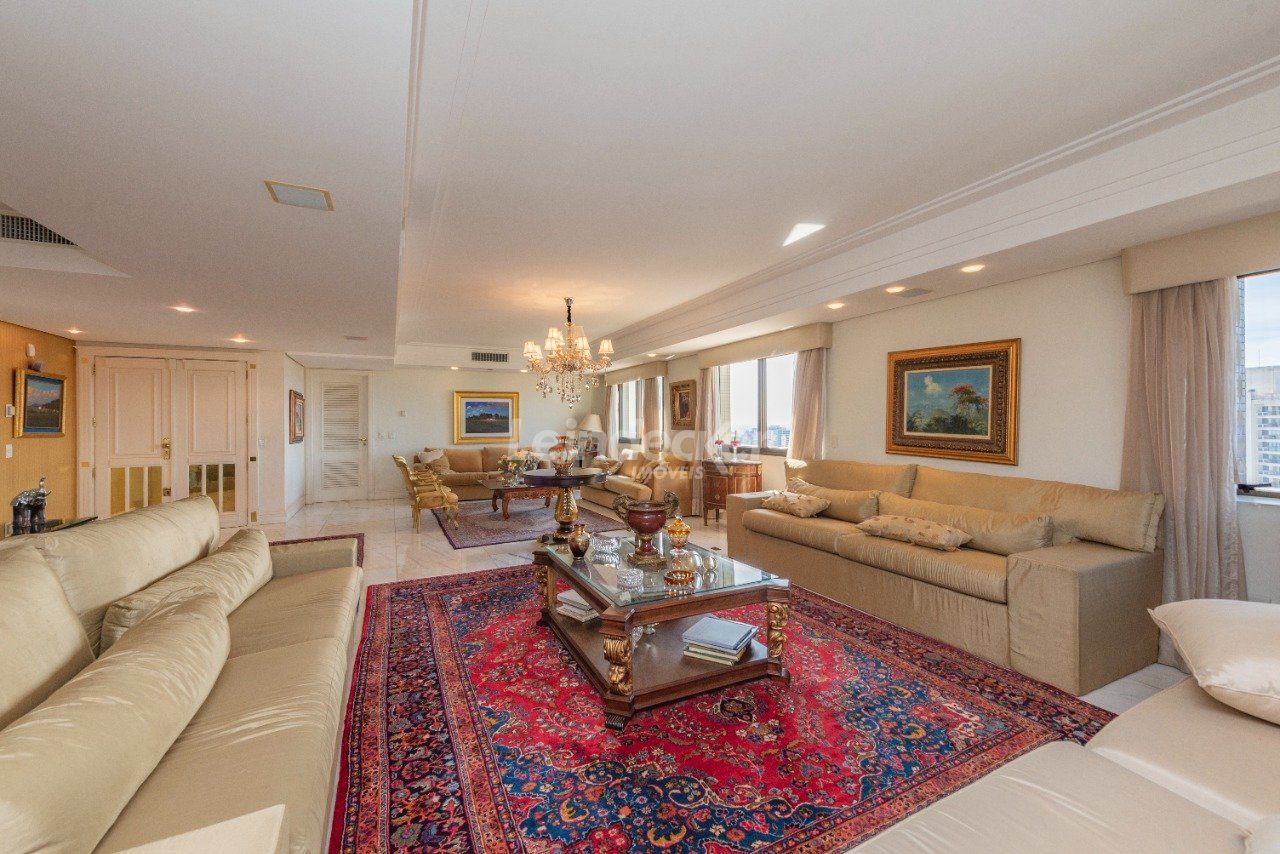 Cobertura em ponto mais alto de porto alegre, com vista de 360º, empresário de mudança para o exterior vende a cobertura com 601m² e requintado acabamento. 03 (três) suítes, sendo uma delas máster com estar íntimo, closet e hidro, com 80m²;Closet em todos os quartos, e as 03(três) suítes podem ser transformadas em 04 (quatro) ou 05(cinco) dormitórios; Armários laqueados com vitrais franceses; 02 (dois) lavabos; Área social com 300m² ;Piso em mármore italiano; Escadarias em mármore e vidro; Rebaixe em gesso e sistema de som em todos ambientes, inclusive banheiros e piscina, ar central quente e frio; Lareira ;Home theater;Copa/cozinha com passa-pratos e piso trabalhado em granito e latão;Lavanderia;Dependência de empregada com banheiro;Portas duplas na entrada dos dois andares com hall decorado;Chapelaria;Tecidos das paredes diretamente da indonésia;02 elevadores codificados que atendem os dois andares da cobertura;Amplo terraço com solarium, pista de dança e piscina sobre deck com batentes de trem;Jardinagem do takeda; 04 (quatro) vagas de garagem;Depósito.Condomínio com infra estrutura de lazer completa, segurança 24hs e vagas para visitantes.Possibilidade de venda com mobília!Valor sob consulta!