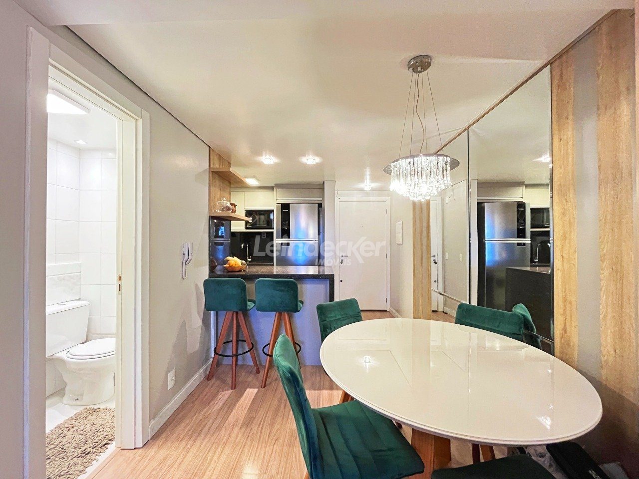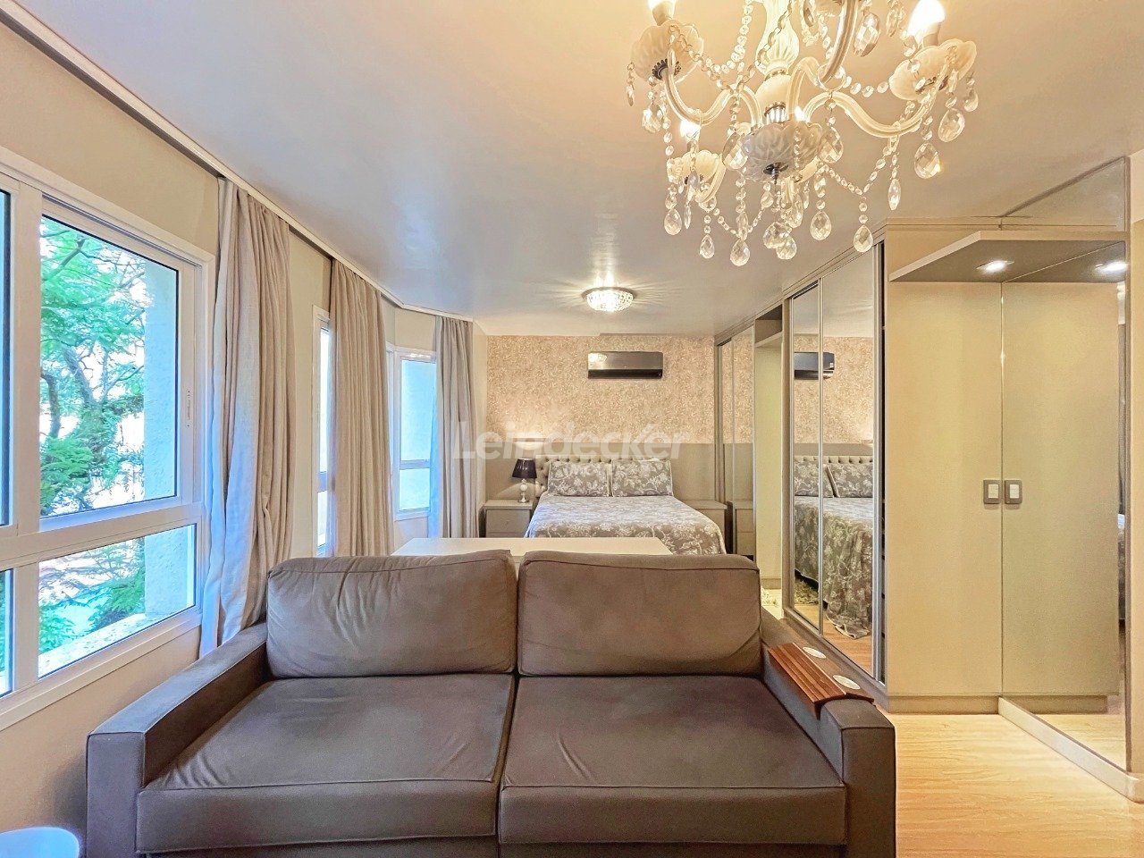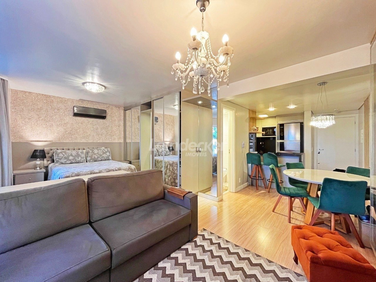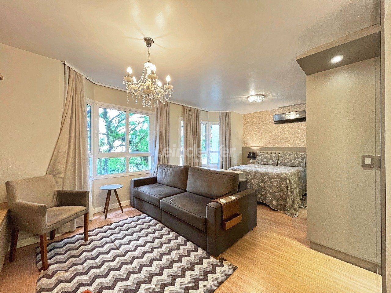 Apartamento com conceito aberto, com possibilidade de individuação do dormitório, 1 suíte, lavabo, banheiro com ventilação natural, aquecimento a gás em todos os pontos, louças e metais de primeira linha, churrasqueira, adega, ar split 12.000 btu seminovo, cortina com blackout, silencioso, com privacidade e vista para área verde. Imóvel diferenciado. Fica mobiliado e equipado. Conta com garagem escriturada coberta.