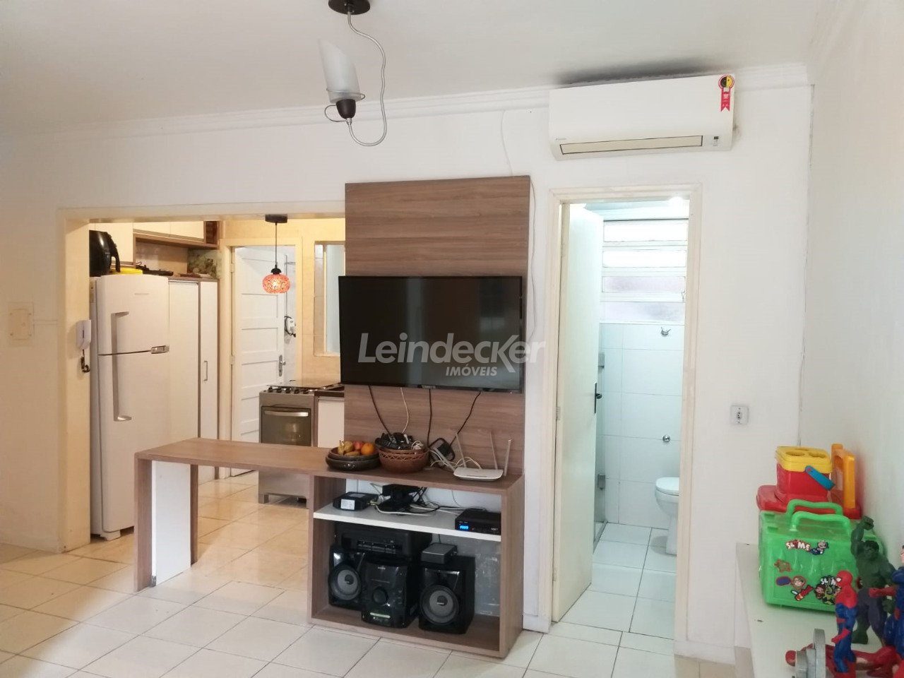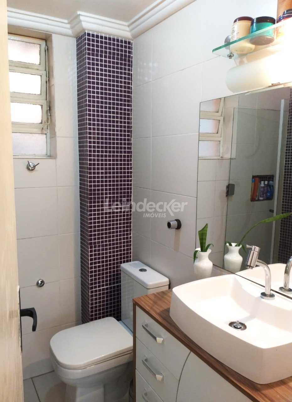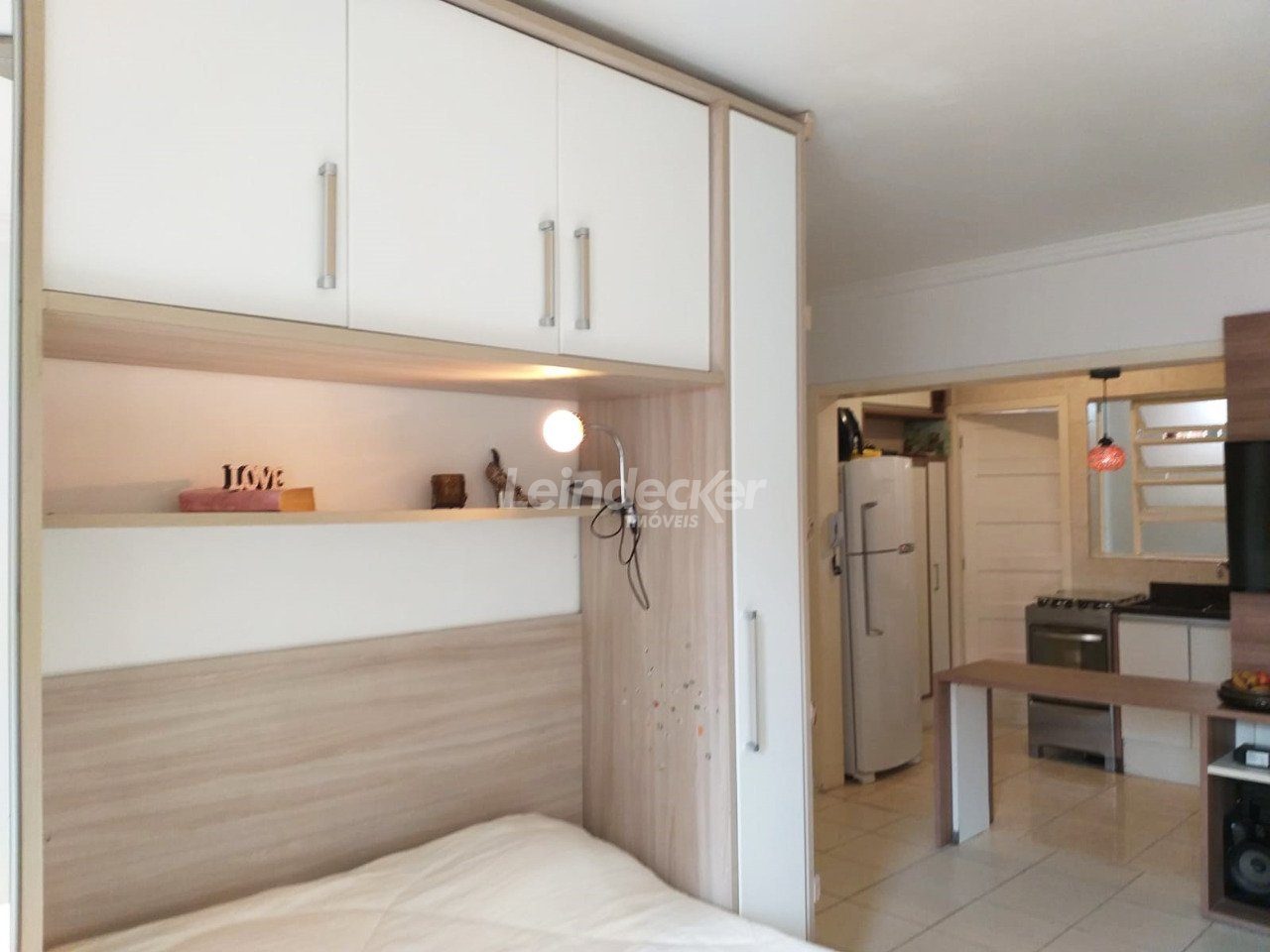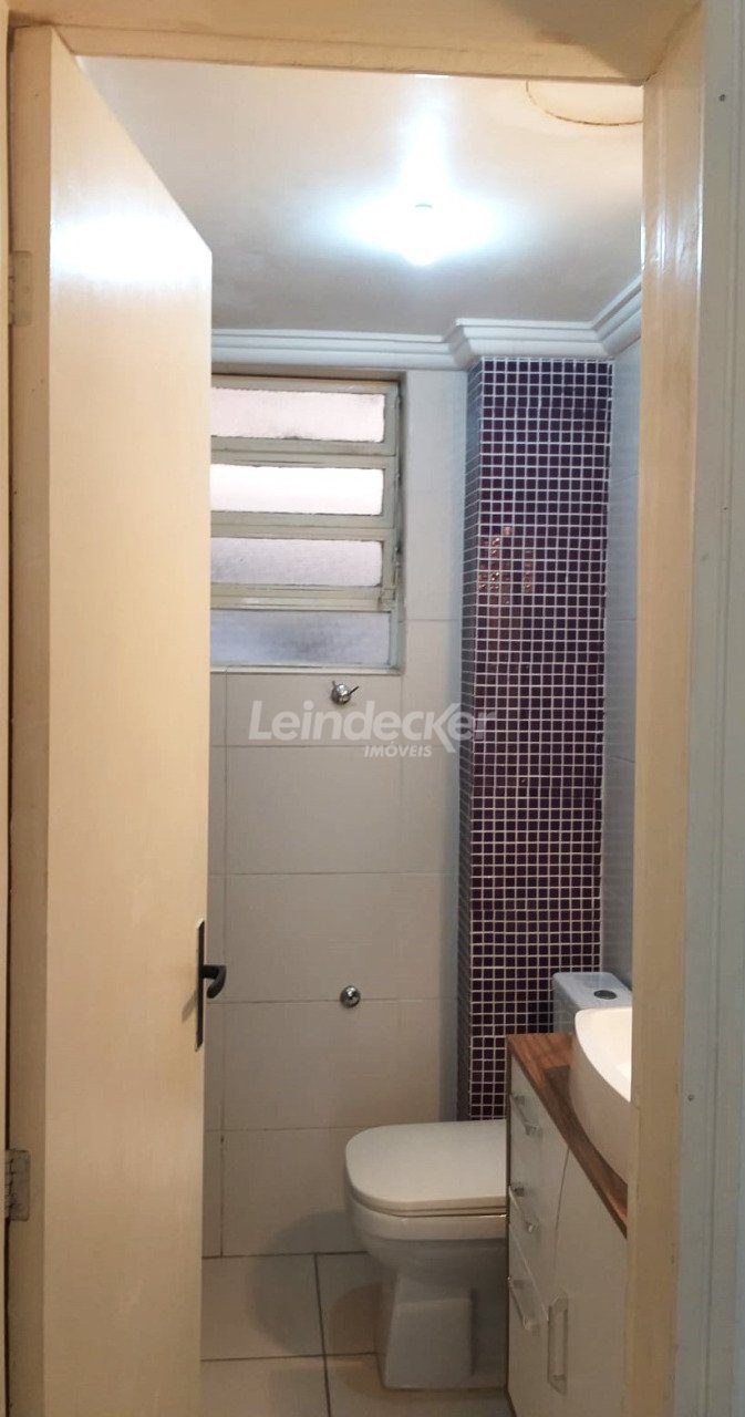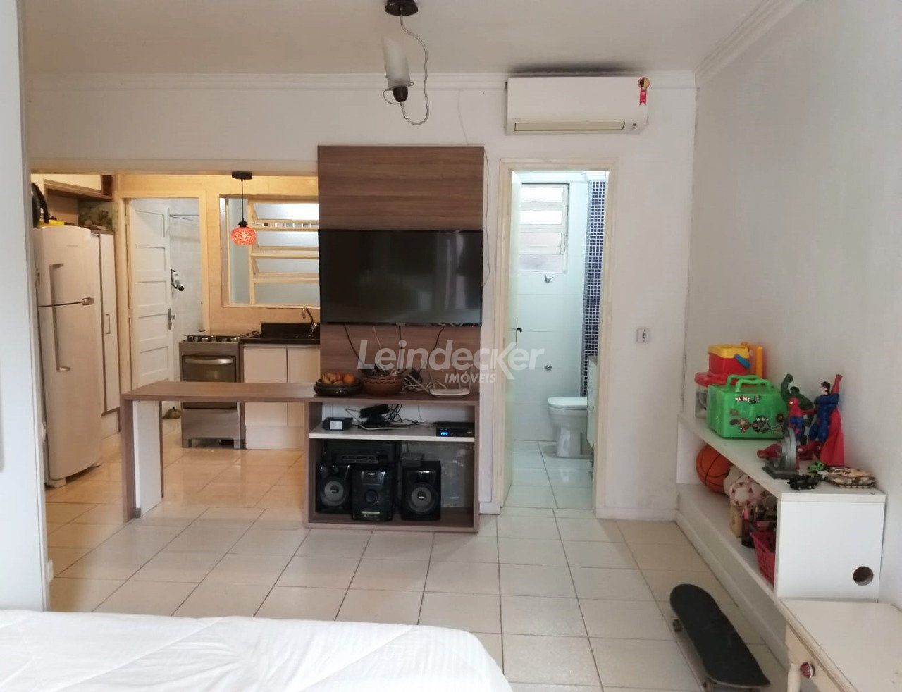 Apartamento studio, semimobiliado, com 31 m² privativos, térreo, living, banheiro social decorado, piso frio, terraço, com sol norte, cozinha americana e área de serviço separada.