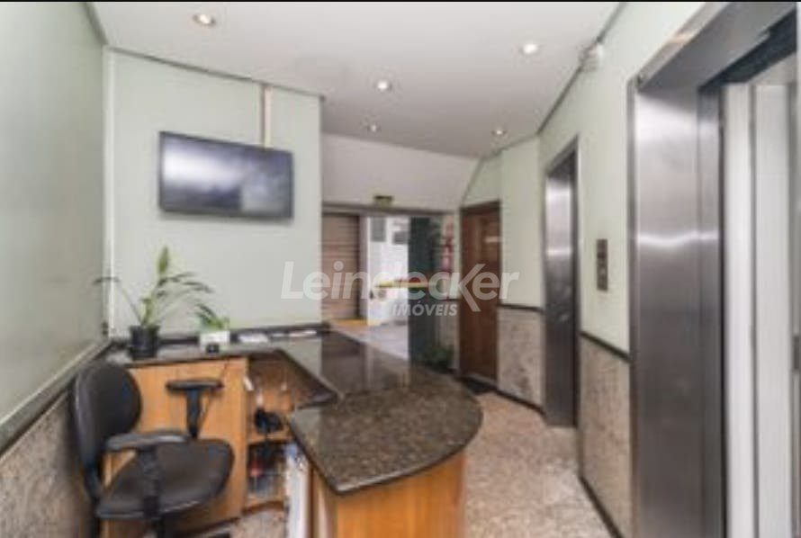Sala comercial de 21,53 privativos, com banheiro, bem iluminada, localizada na Avenida Assis Brasil. Está desocupada, de fundos. Prédio com elevador, portaria e segurança.